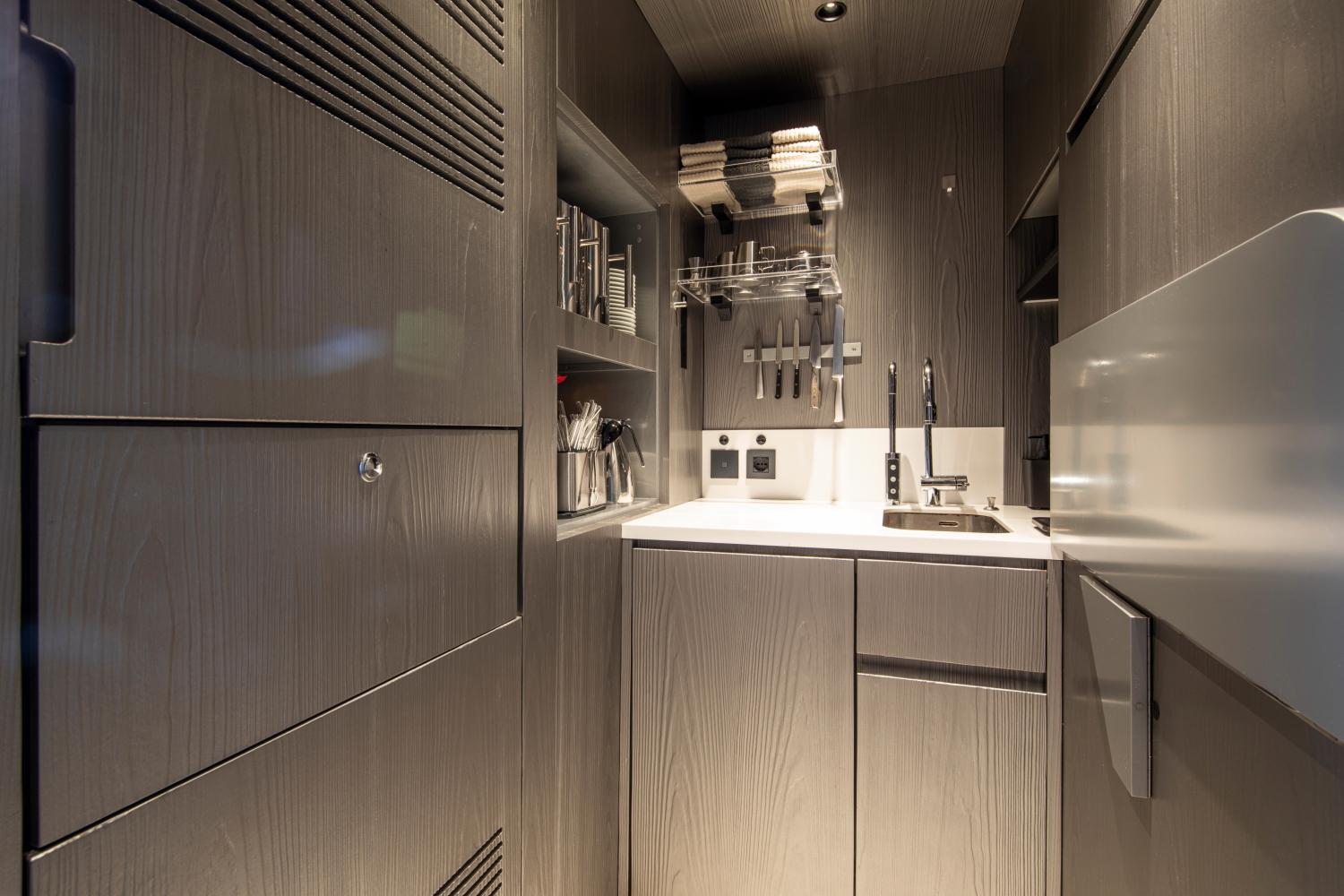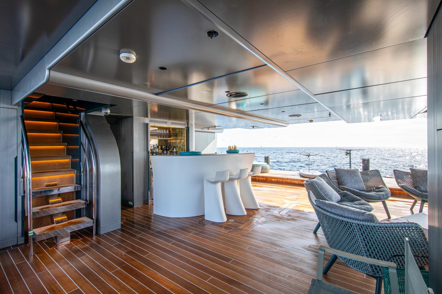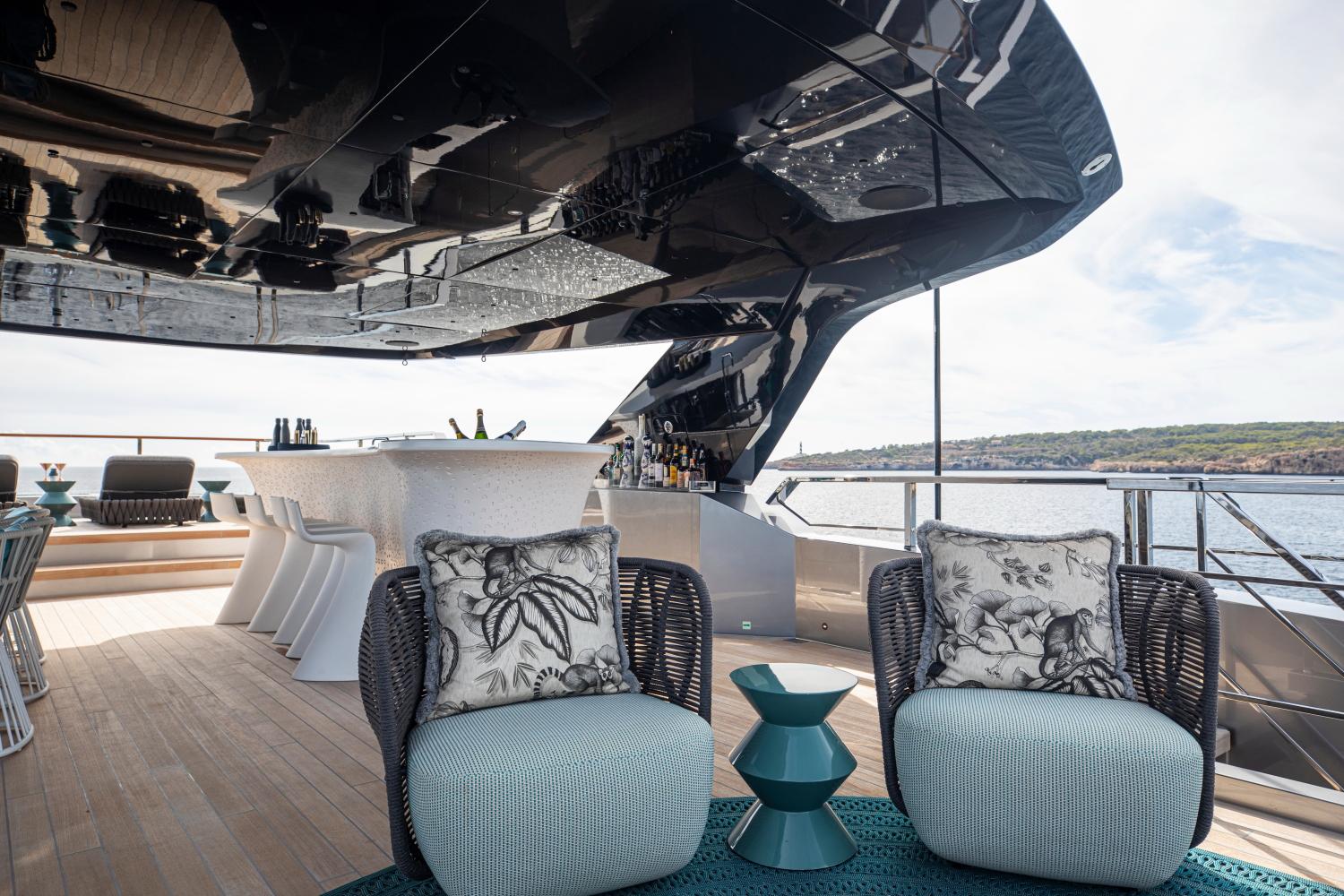 PANDION PEARL располагает просторным бич-клабом и полностью укомплектована двумя тендерами Williams длиной 6,35 м и 3,45 м, а также обширным набором водных игрушек и профессиональным оборудованием для дайвинга.
