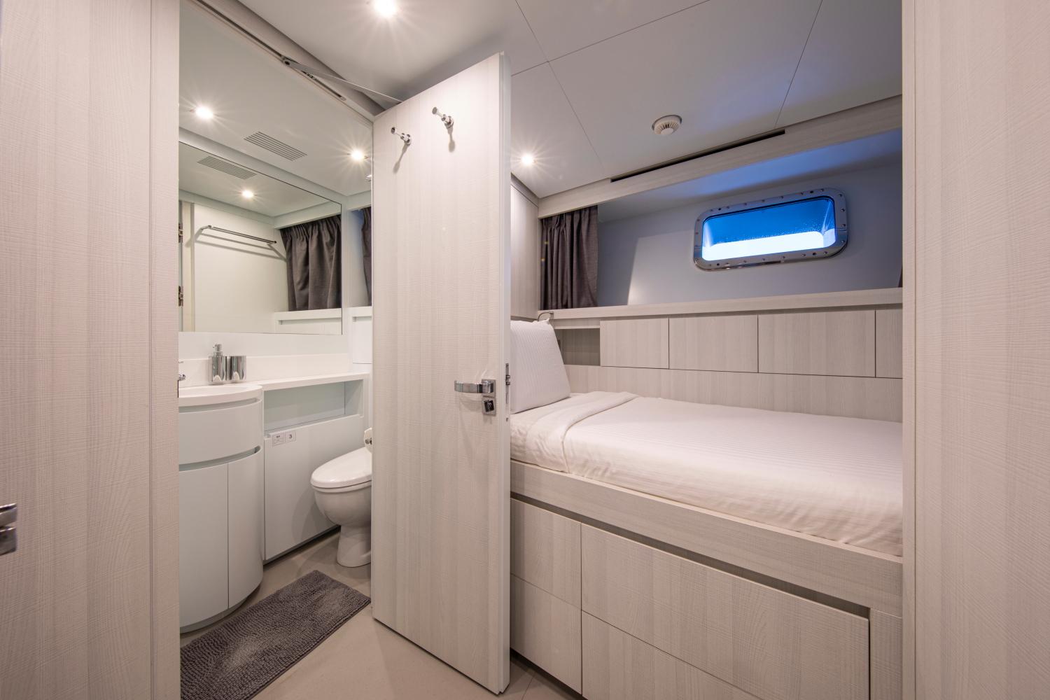Ещё четыре гостевые каюты расположены на нижней палубе: две VIP-каюты с двуспальными кроватями и две каюты с раздельными кроватями, каждая с дополнительным Pullman-спальным местом. Все каюты оборудованы собственными ванными комнатами.