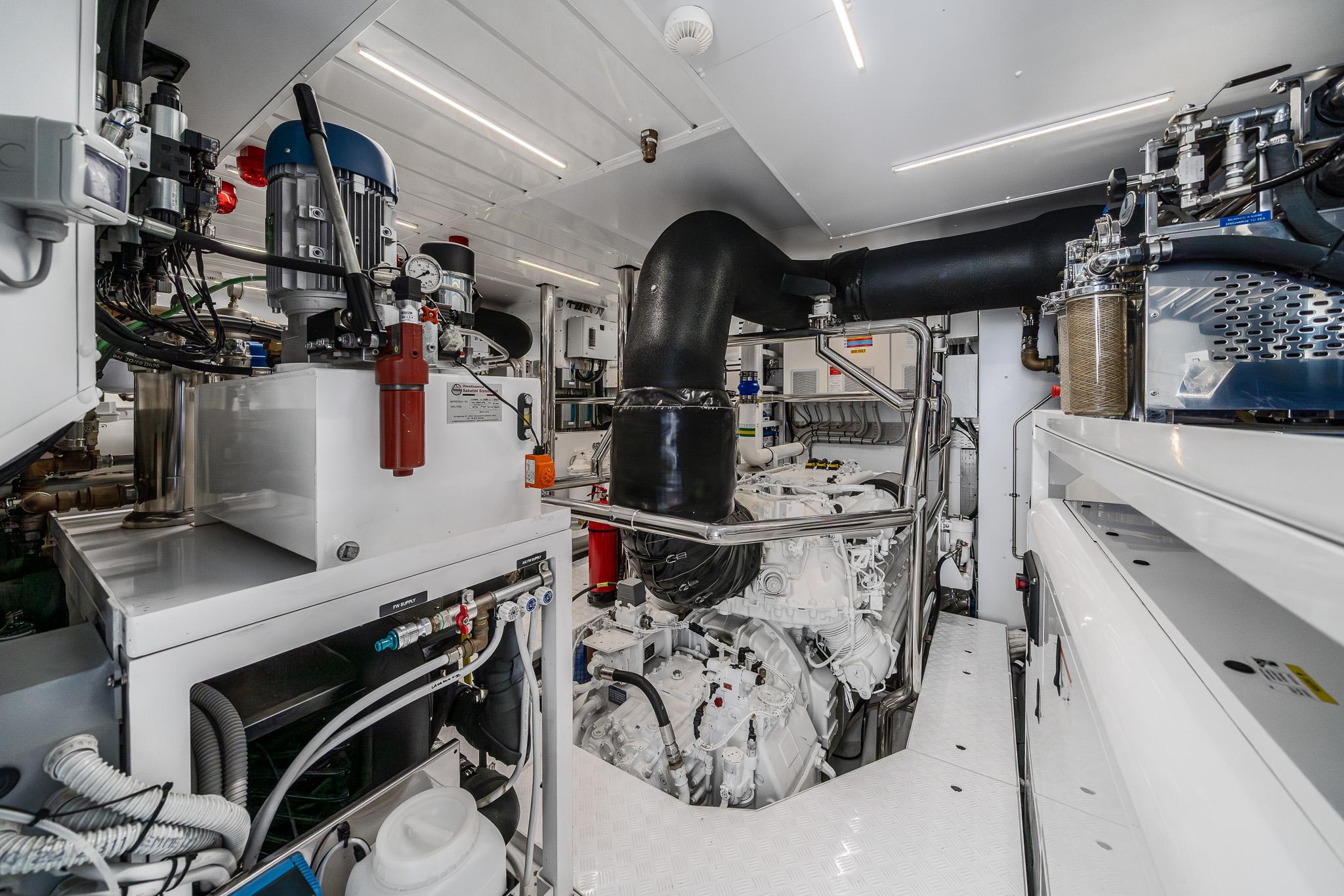 Яхта Sanlorenzo BLUE ANGEL 2021 года — выдающийся представитель серии SL 120 Asymmetric, воплощающий в себе итальянское мастерство и инновационный дизайн. Эта быстрая глиссирующая яхта гармонично сочетает динамику и роскошь, развивая максимальную скорость до 27 узлов и комфортную крейсерскую скорость 23 узла. Два двигателя MTU в сочетании с электрическими стабилизаторами нулевой скорости обеспечивают отличную управляемость и комфорт как на ходу, так и на якоре.