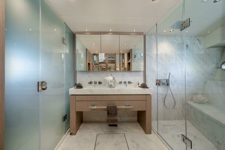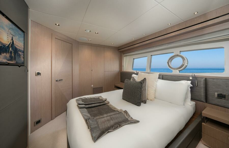 Безупречная яхта с наработкой всего 350 моточасов на двигателях. Индивидуальный проект, выполненный по спецификации единственного владельца. Недавно прошла сервисное обслуживание на верфи (июнь 2023 года). Обновлена донная окраска и нанесено покрытие Prop Speed.