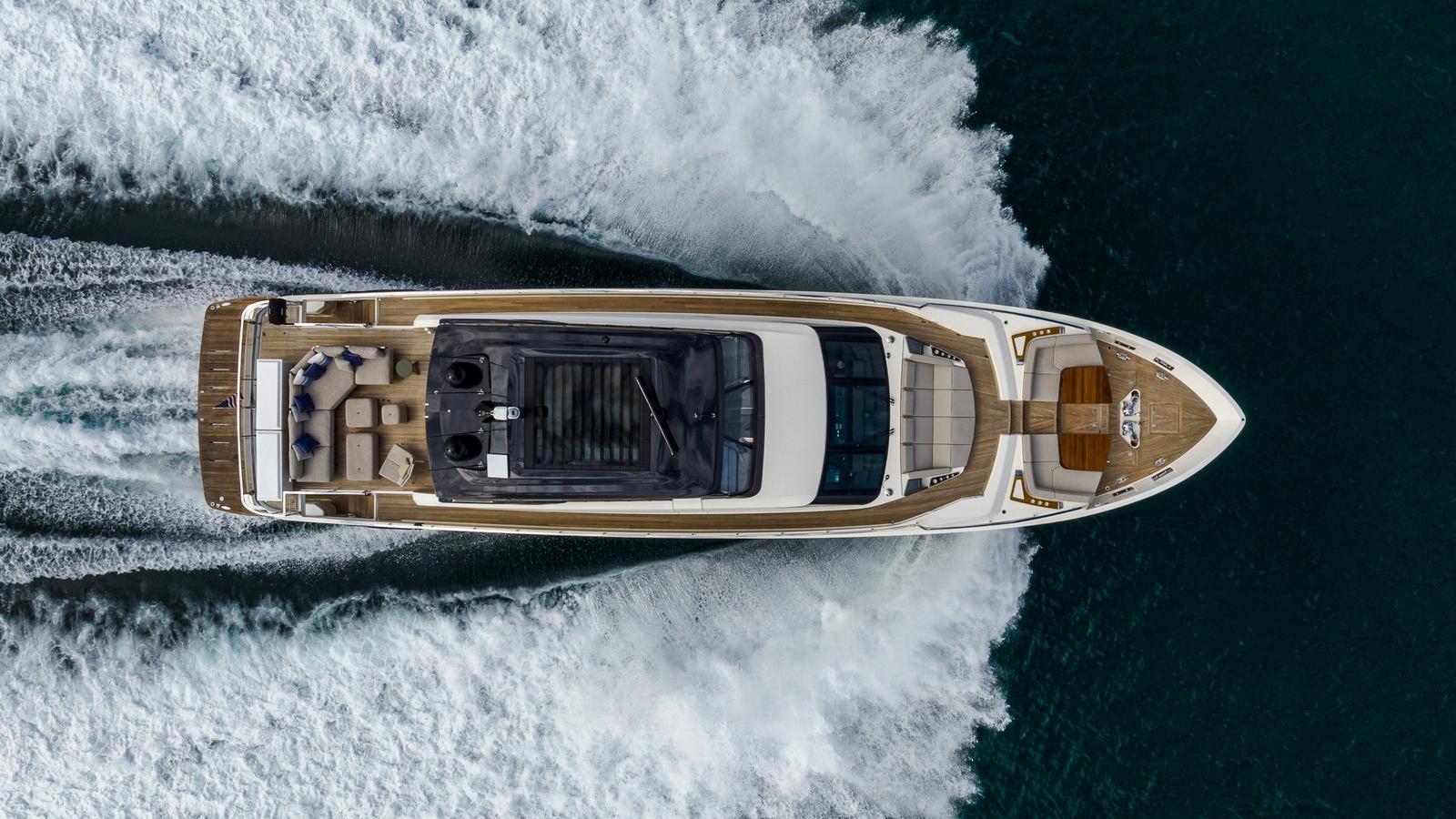 Экстерьерные пространства AURORA, разработанные Филиппо Сальветти, не менее впечатляющи. Просторный флайбридж имеет прямой доступ к носовой лаунж-зоне, создавая идеальную планировку для приёма гостей и отдыха в нескольких открытых зонах. В кормовой части расположен большой бич-клаб с гаражом для тендера и гидроцикла, обеспечивающий прямой и удобный доступ к морю и максимальное удовольствие от отдыха у воды. Двойная система стабилизации (гиростабилизаторы Seakeeper и стабилизаторы нулевой скорости) гарантирует исключительный комфорт как на ходу, так и на якоре.