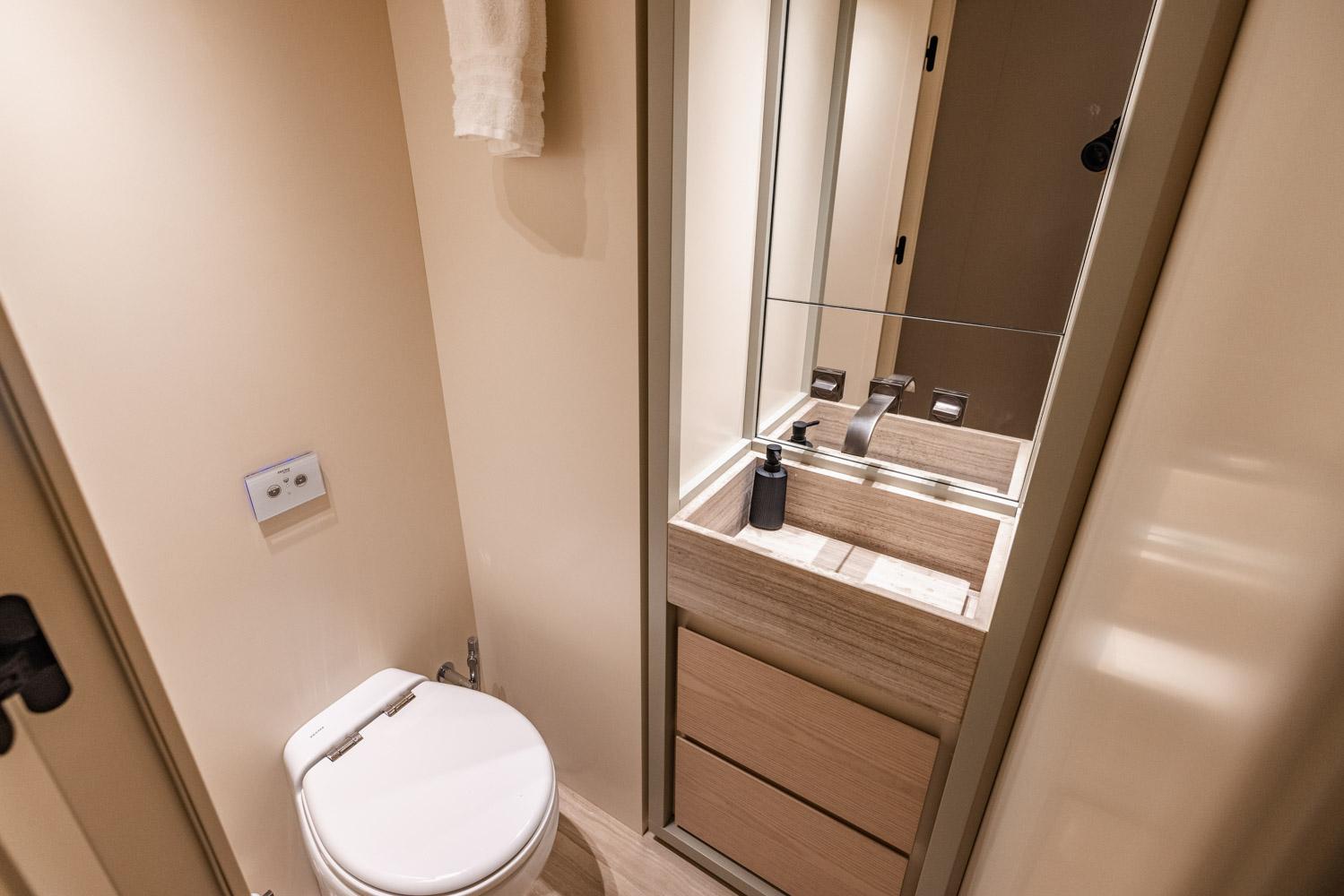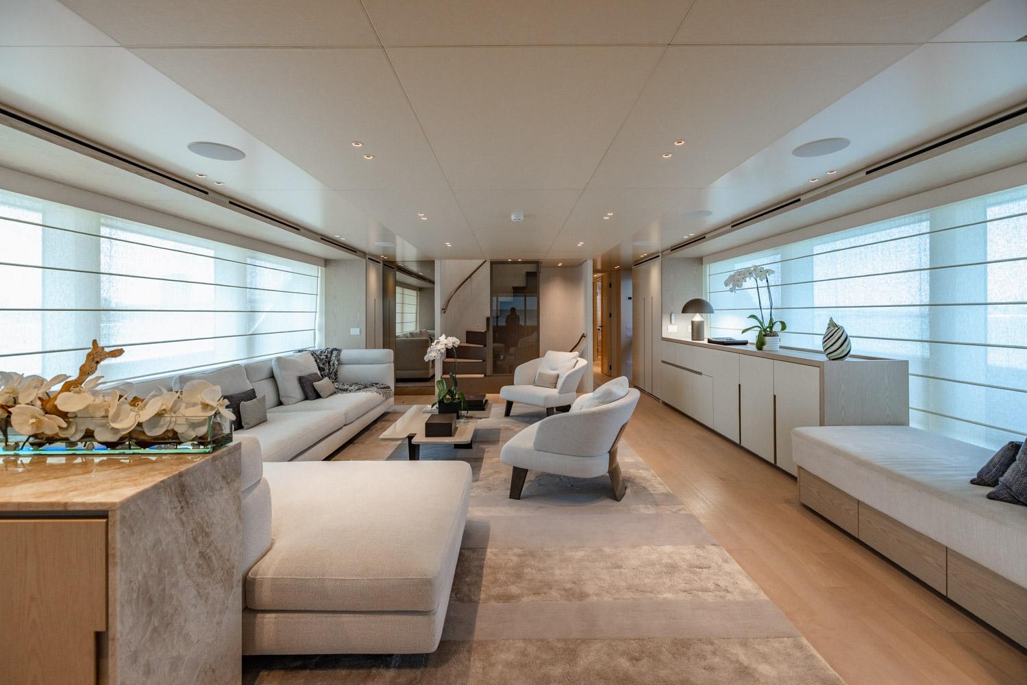 Тщательно продуманные интерьеры демонстрируют высочайший уровень индивидуального мастерства и отделки, с использованием эксклюзивных тканей и обивки по всему судну. Высококачественные материалы и персонализированная мебель формируют тёплую и гостеприимную атмосферу, в которой комфорт сочетается со стилем. Планировка предусматривает размещение до 10 гостей в 5 прекрасно оборудованных каютах, каждая из которых отражает современный морской стиль и оснащена собственной ванной комнатой и вместительными системами хранения.