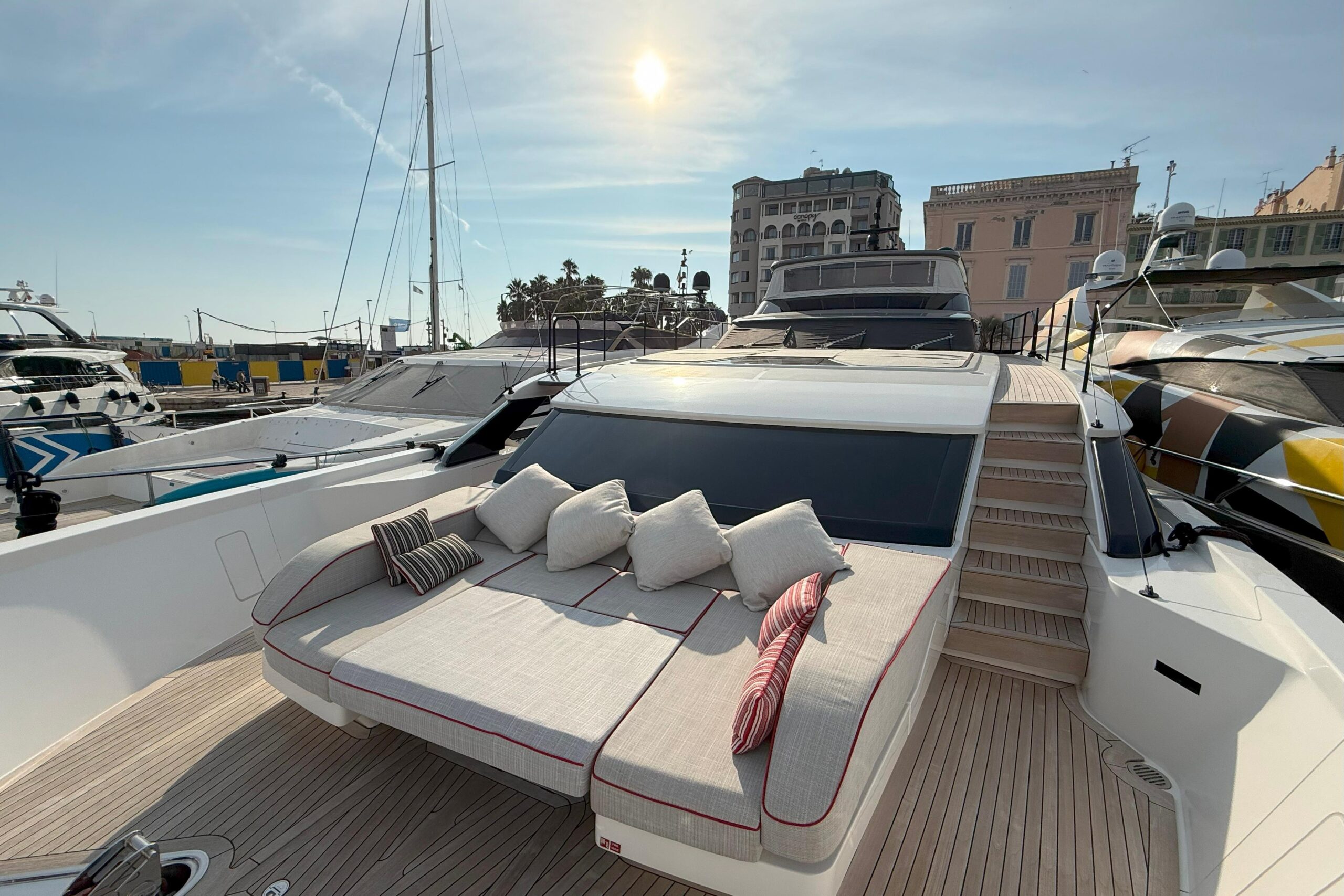 : На борту Williams SportJet 435 и гидроцикл Bombardier Spark; гидравлическая купальная платформа и скрытый кормовой душ создают атмосферу пляжного клуба.