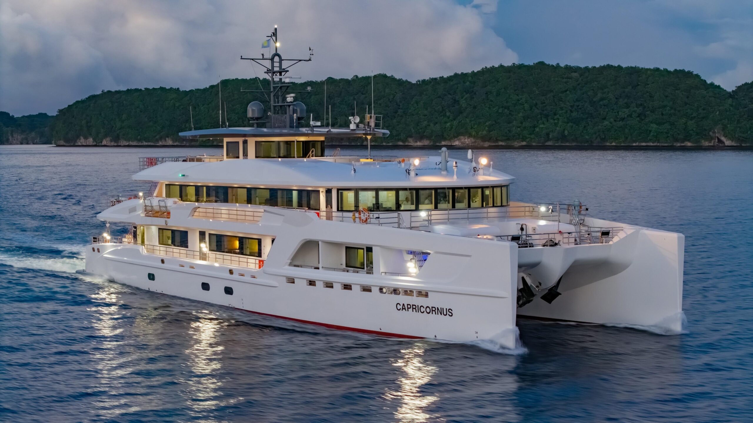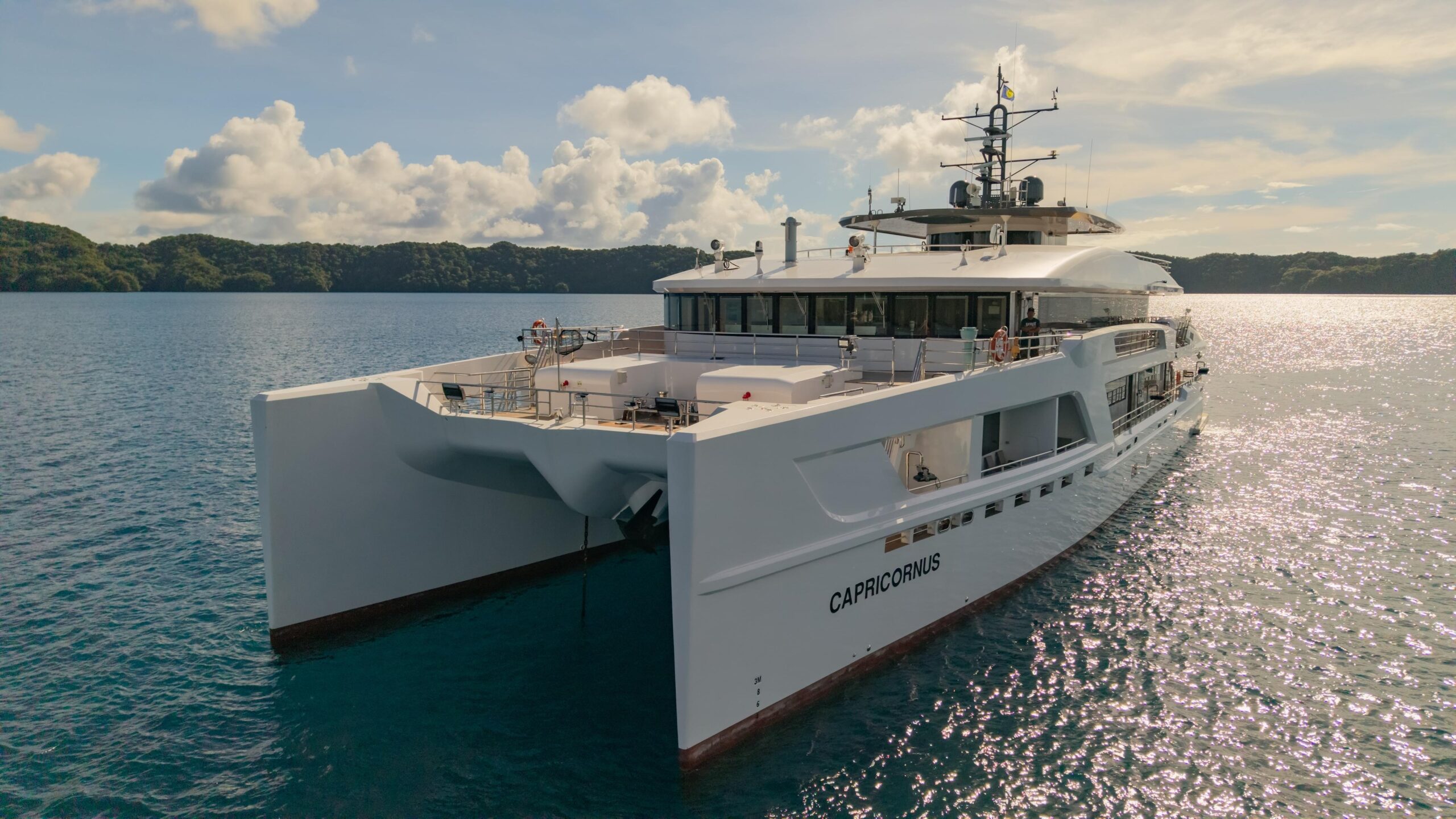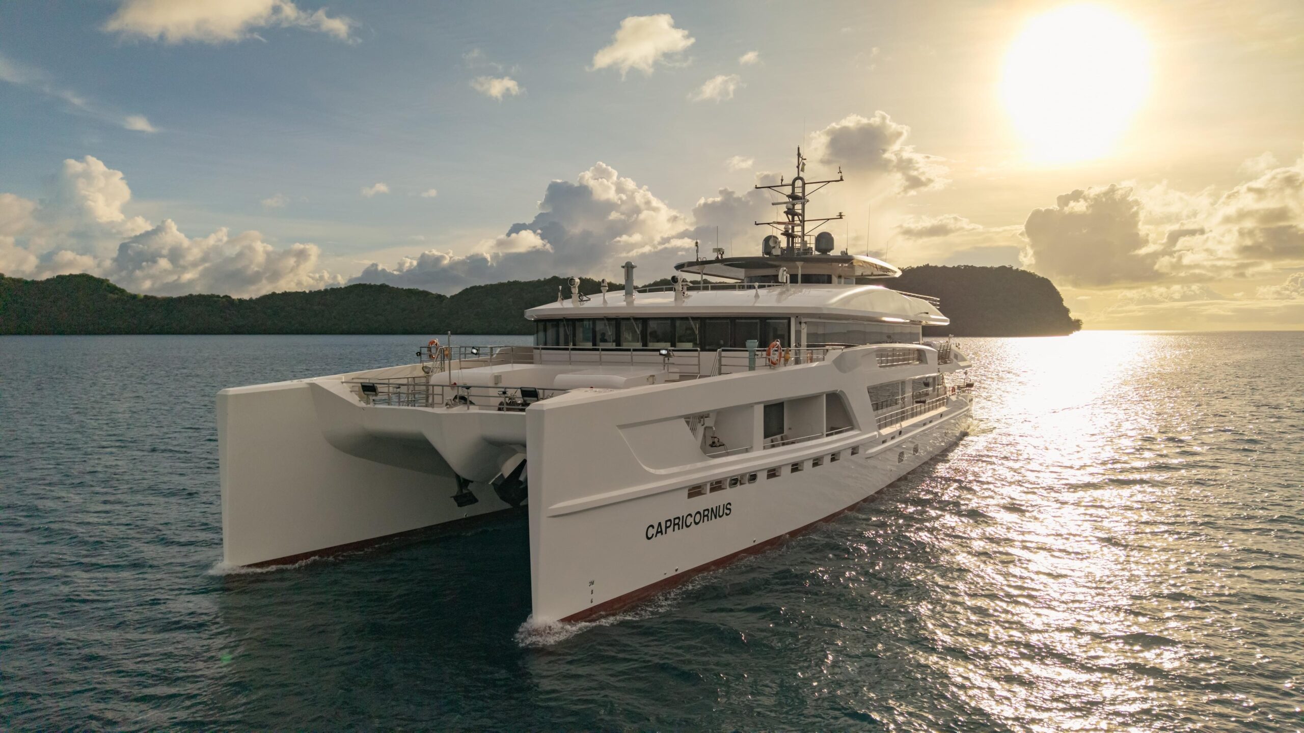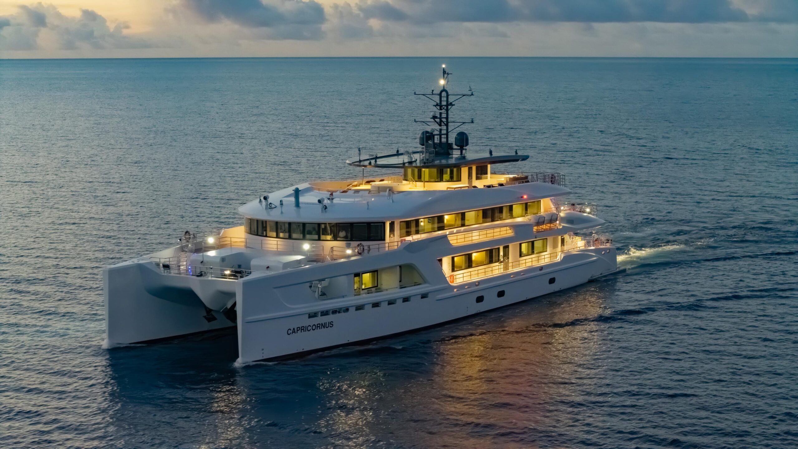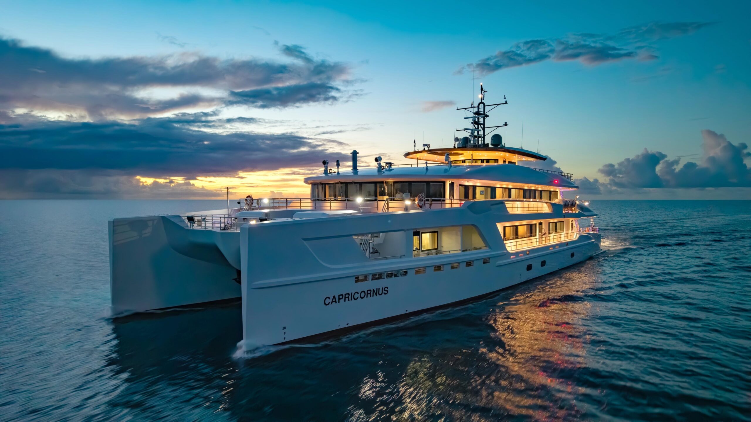 Спущенная на воду в конце 2023 года, концепция Capricornus была разработана известным европейским дизайнерским бюро и представляет собой не только вершину современного судостроения, но и судно, созданное для исследования мира с максимальным комфортом, без компромиссов в производительности и универсальности. Она также является ярким примером глобального перехода к суперъяхтам-многокорпусникам, уверенно выделяясь в постоянно развивающейся индустрии.