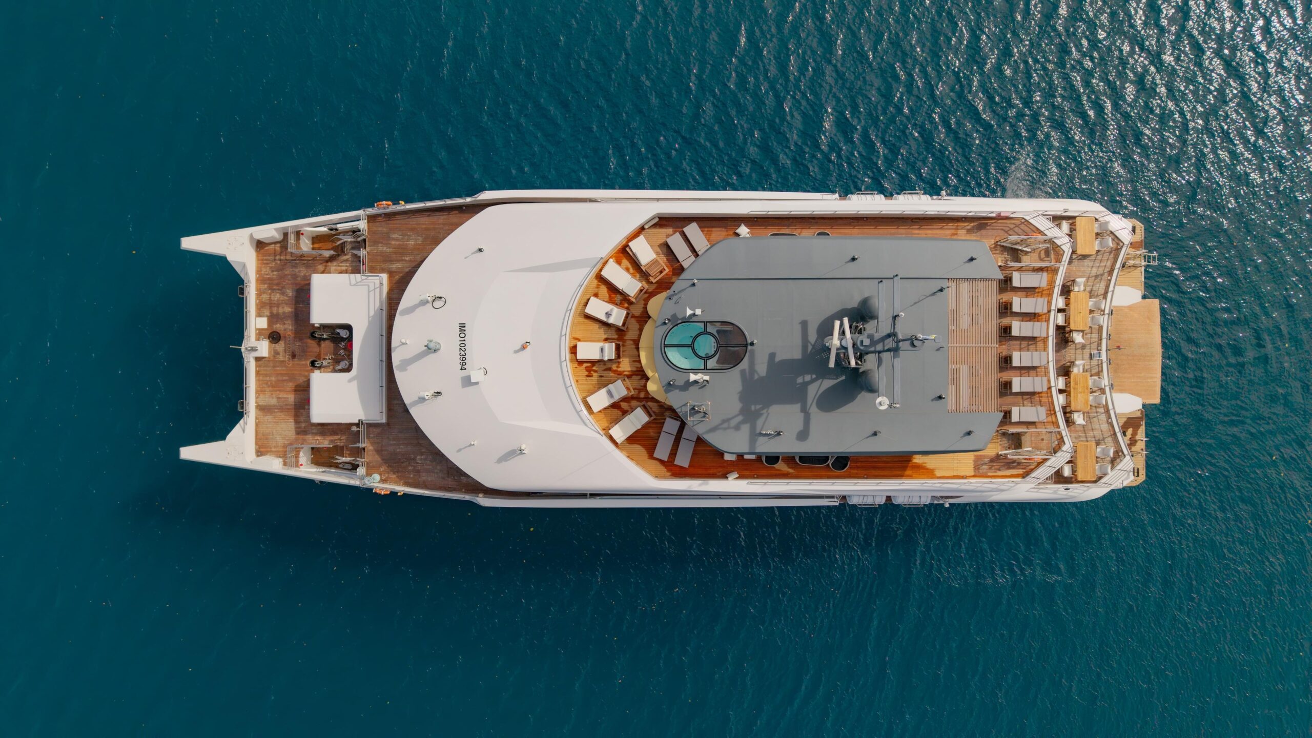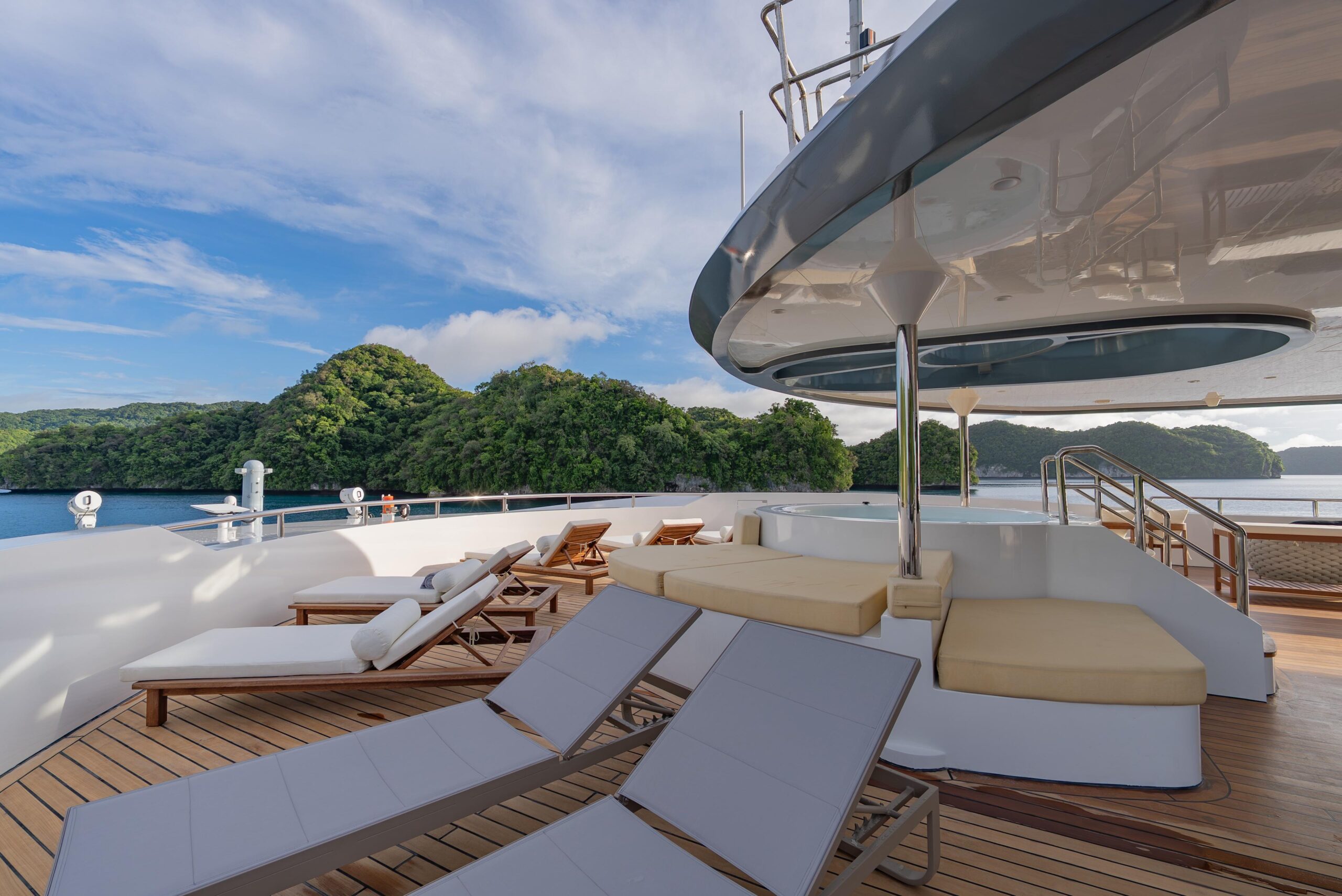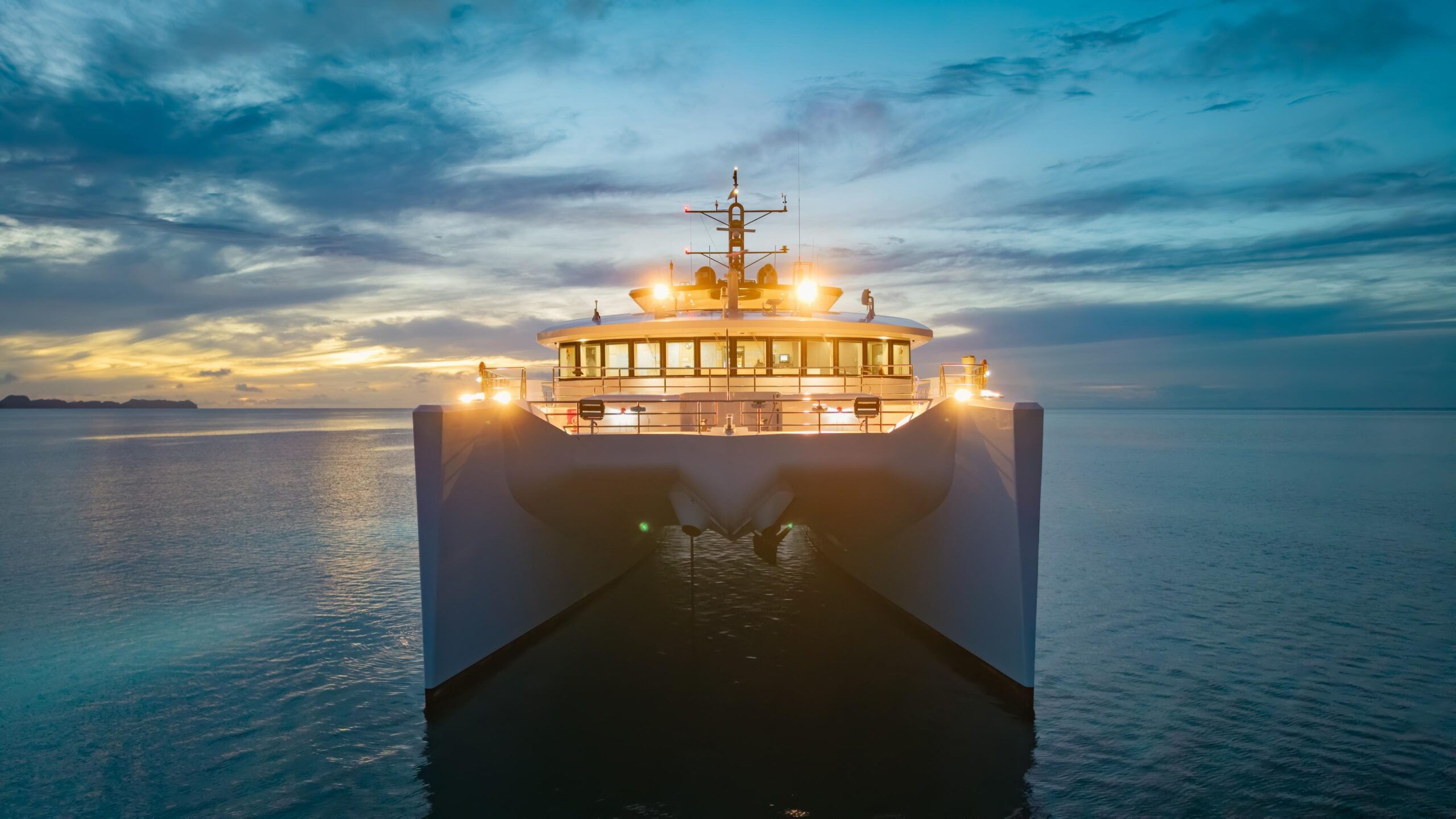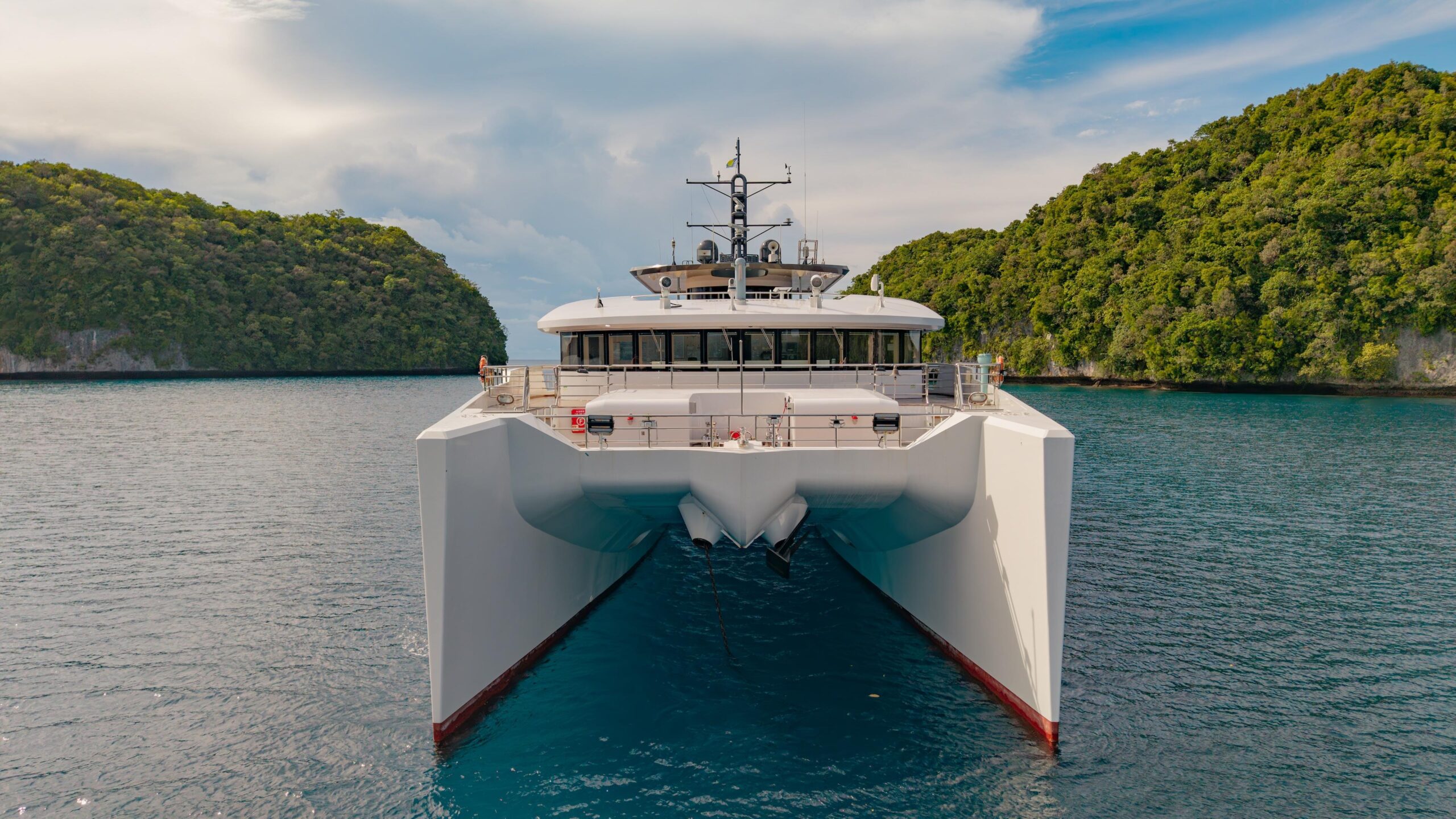 Как трёхпалубный многокорпусник, она может похвастаться валовой вместимостью 900 GT и общей площадью внешних тиковых палуб 600 квадратных метров. При этом её осадка при полной загрузке составляет всего 2,51 метра, что идеально демонстрирует преимущества многокорпусного плавания — исключительную устойчивость и эффективность, а также возможность заходить в мелководные бухты и удалённые якорные стоянки, о которых яхты такого объёма могут только мечтать.