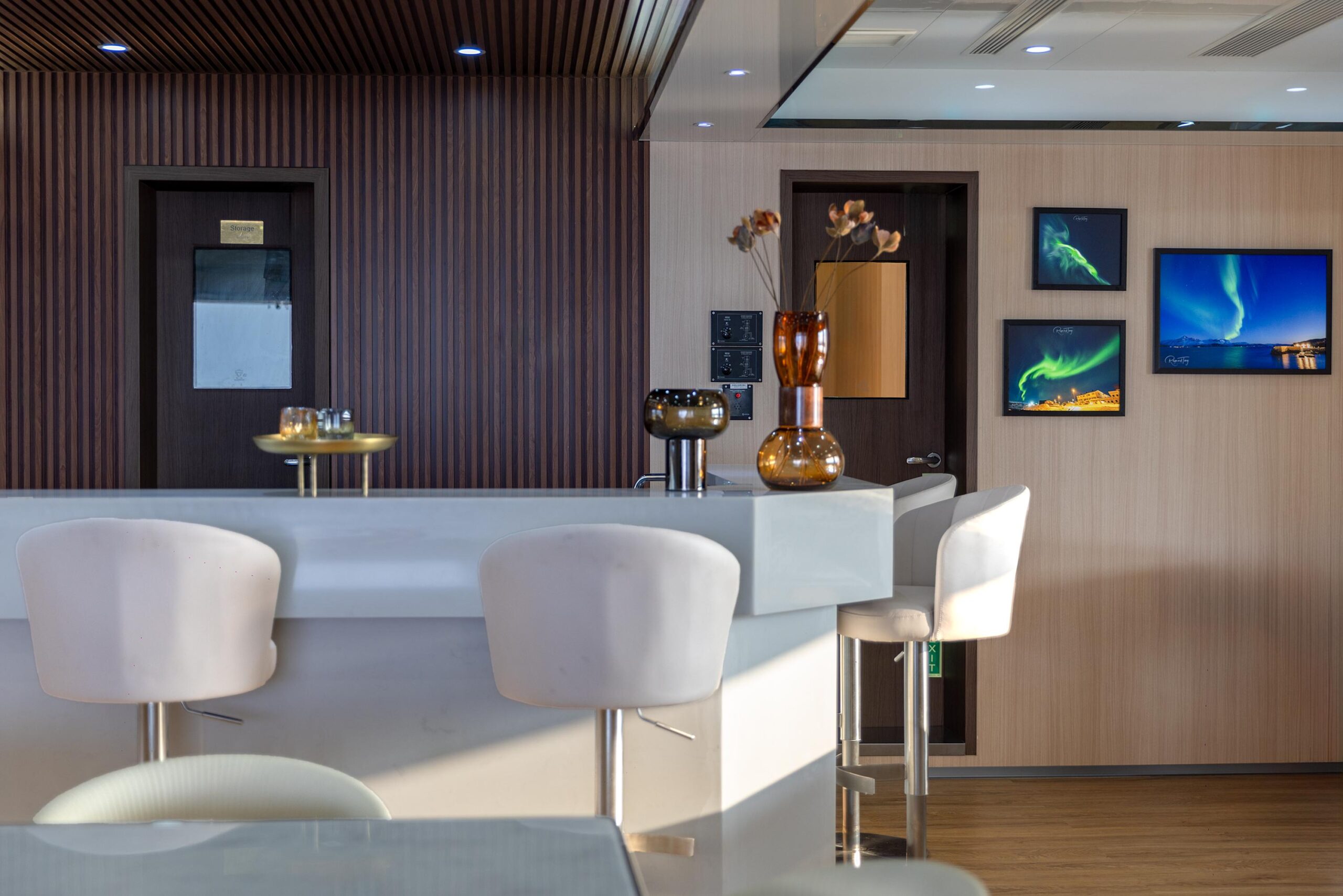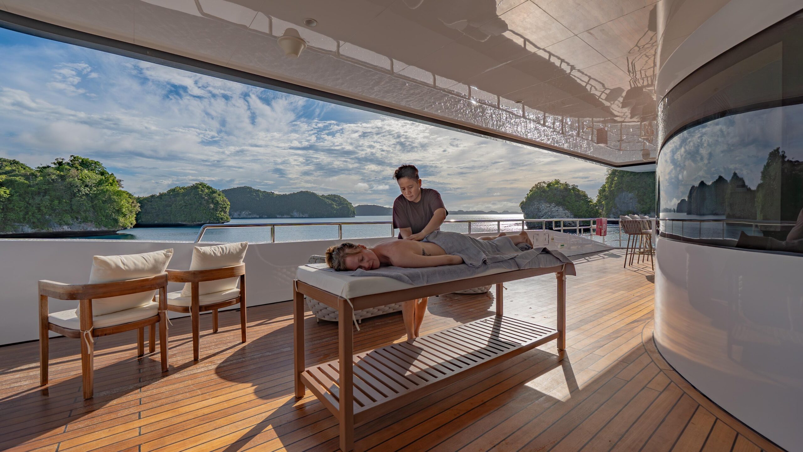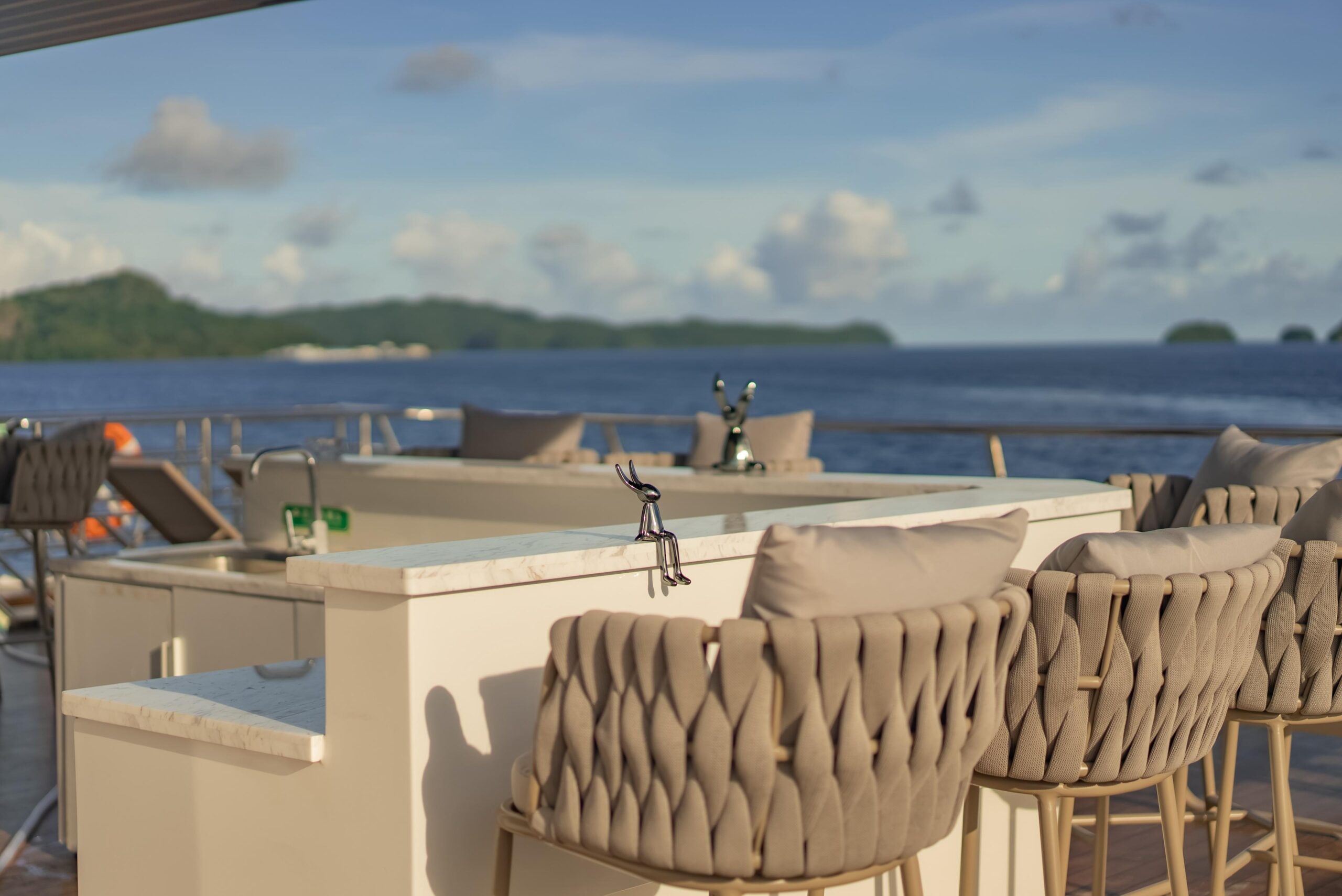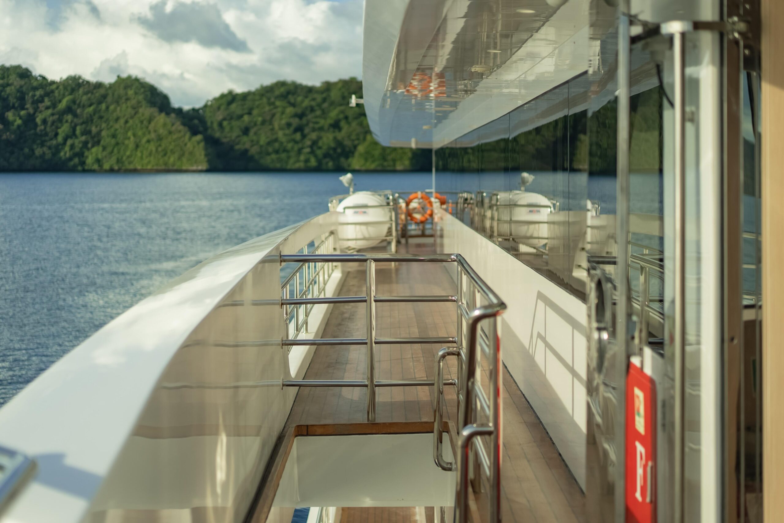 Скай-дек — пожалуй, самое впечатляющее пространство на борту: несколько баров и лаунж-зон, приватная SPA-зона и джакузи на 6 человек с панорамным видом на океан. Стеклянная крыша обеспечивает защиту от непогоды и комфорт при любых условиях.