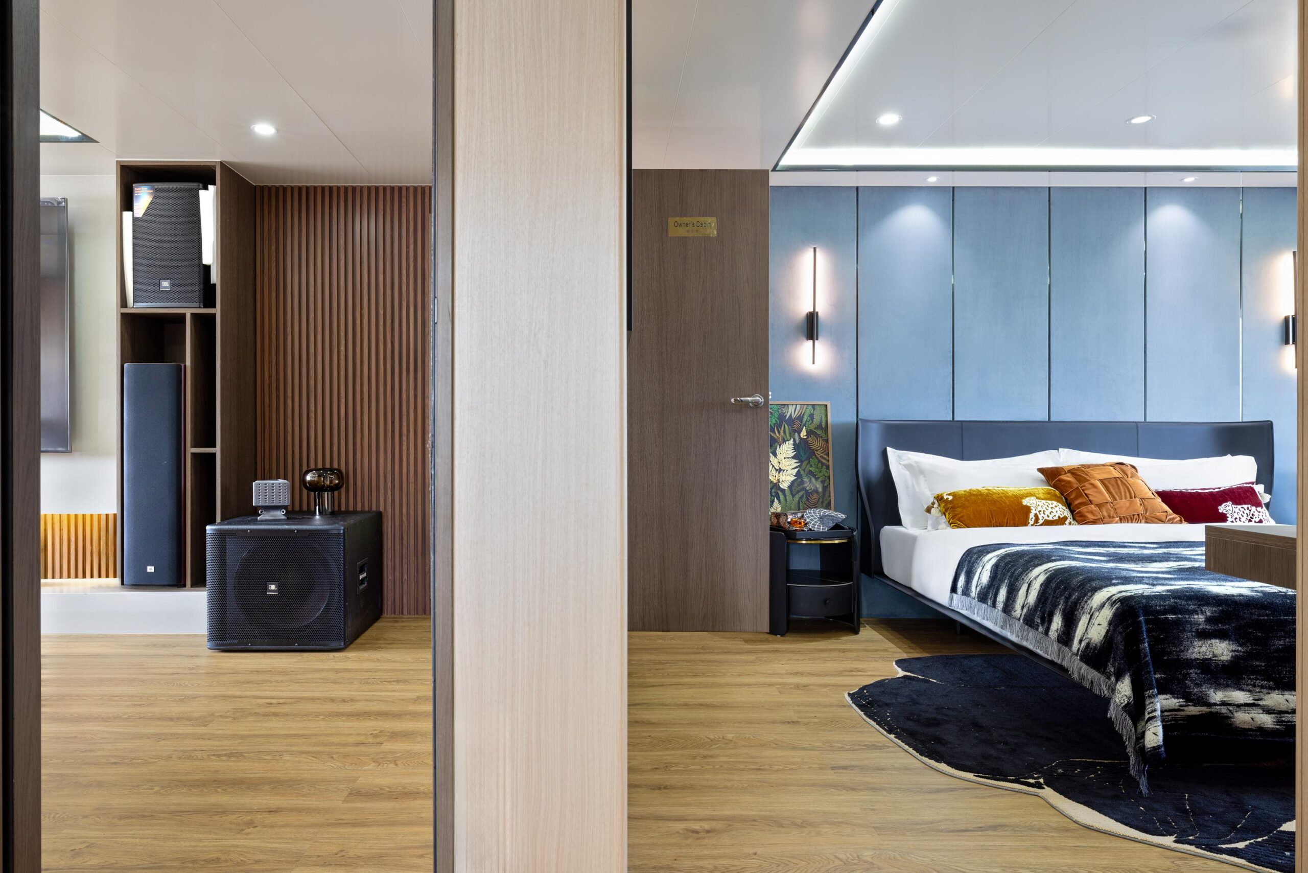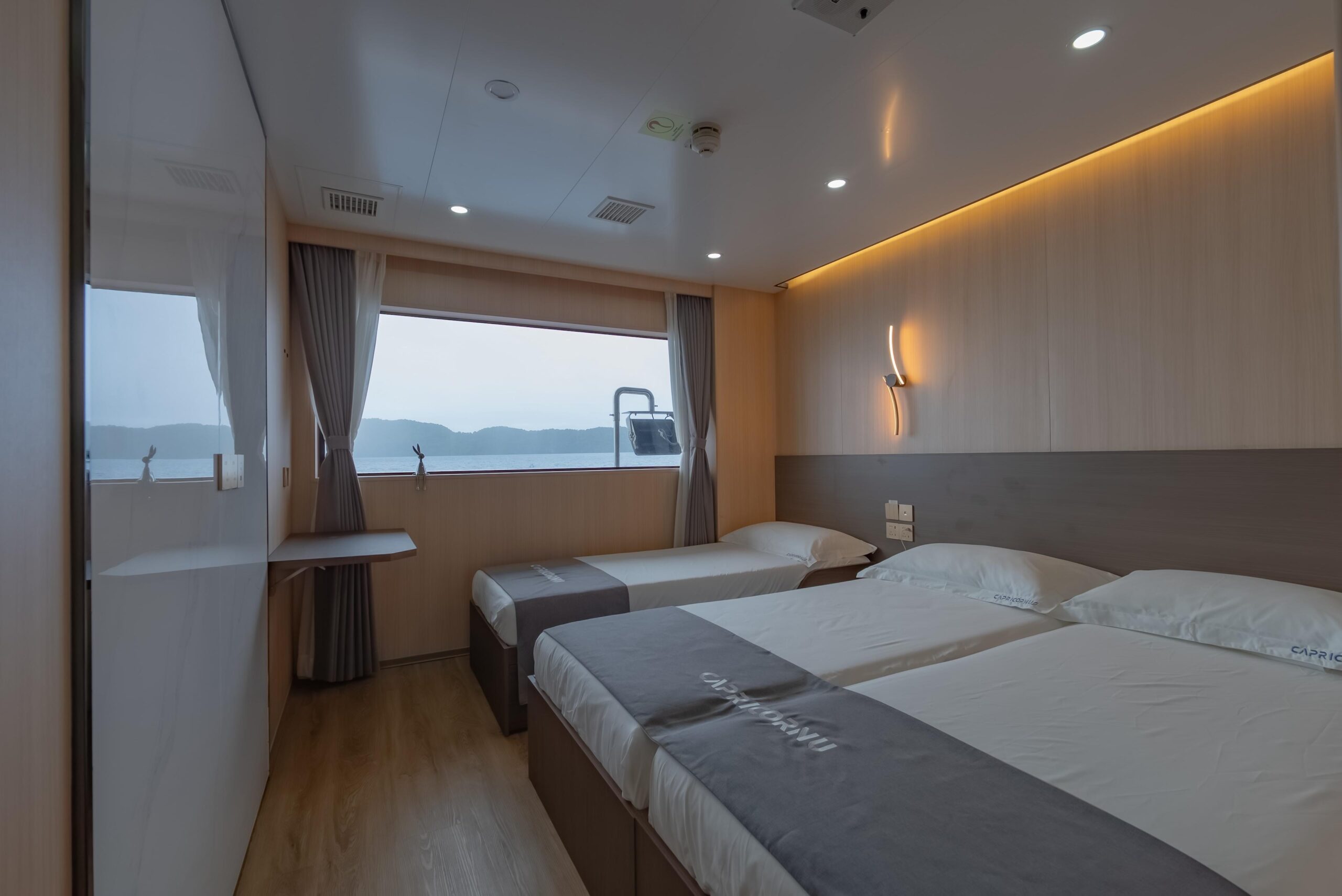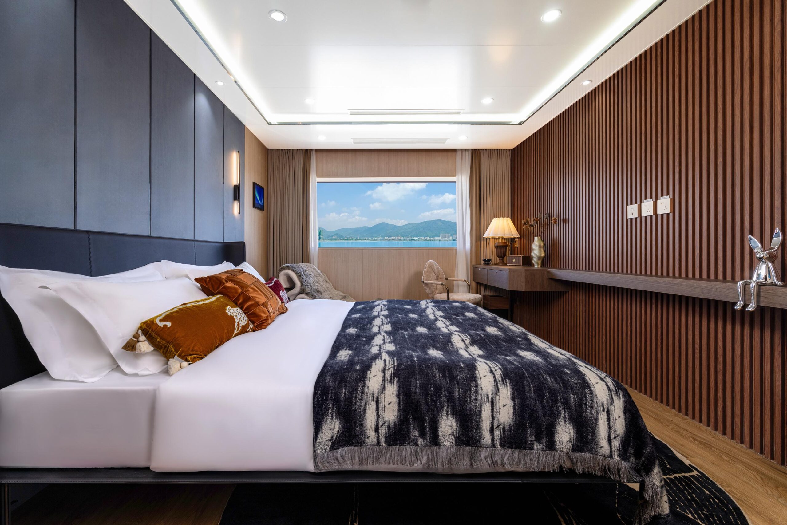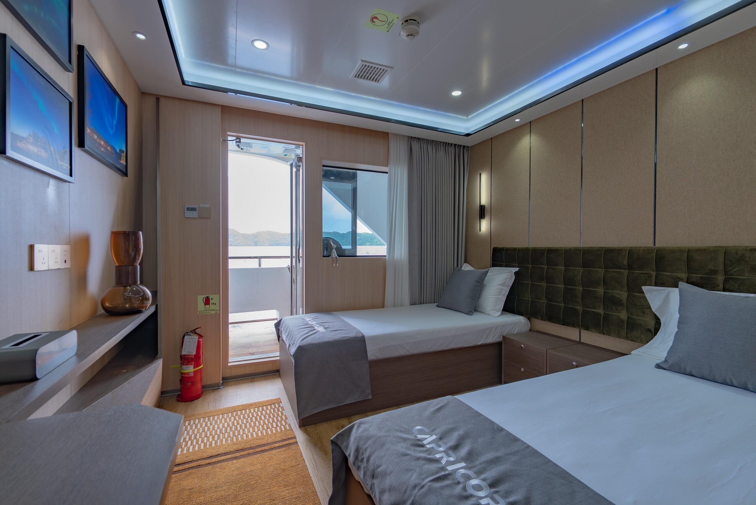 Четыре из этих кают имеют собственные балконы, что особенно привлекательно как для чартеров, так и для частных владельцев. Размещение позволяет принимать до 36 гостей на ночёвку с максимальным уровнем приватности и комфорта.