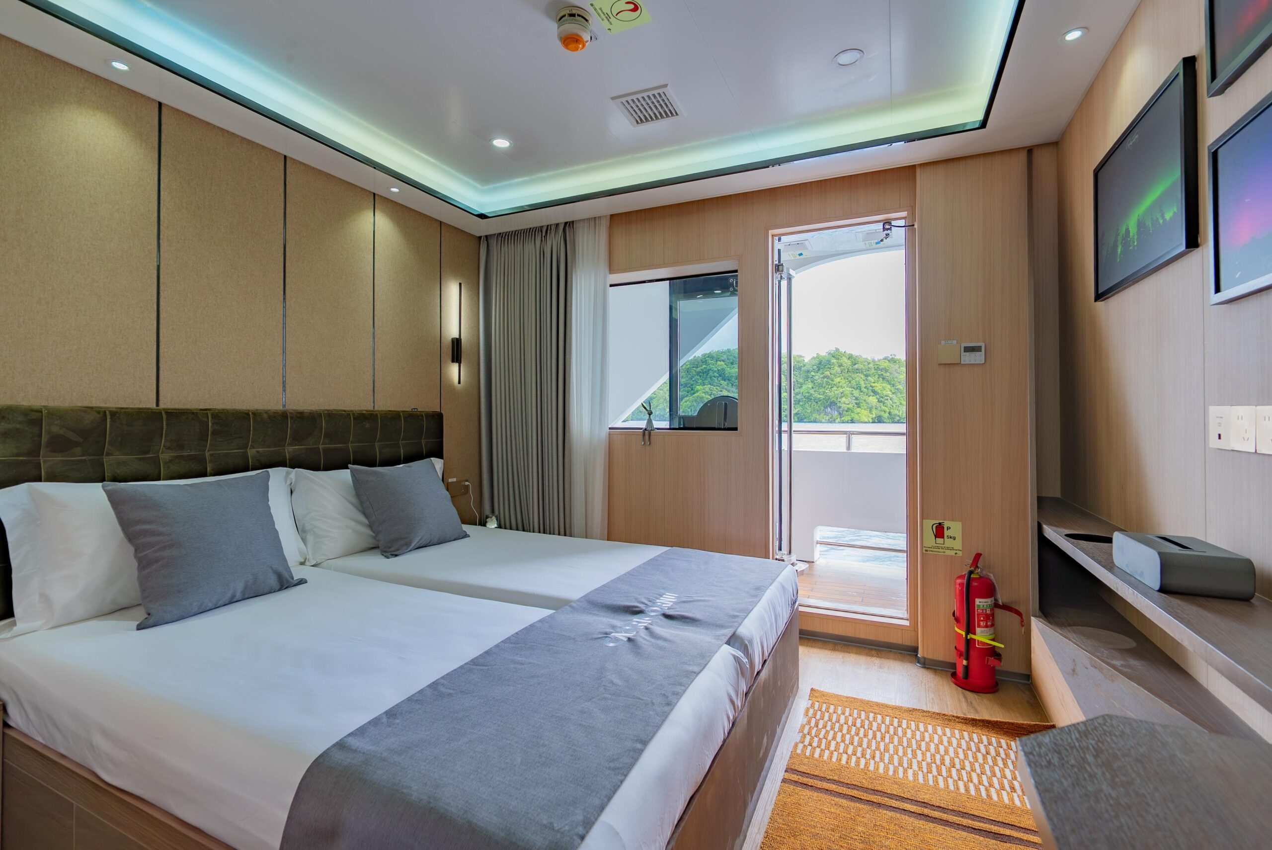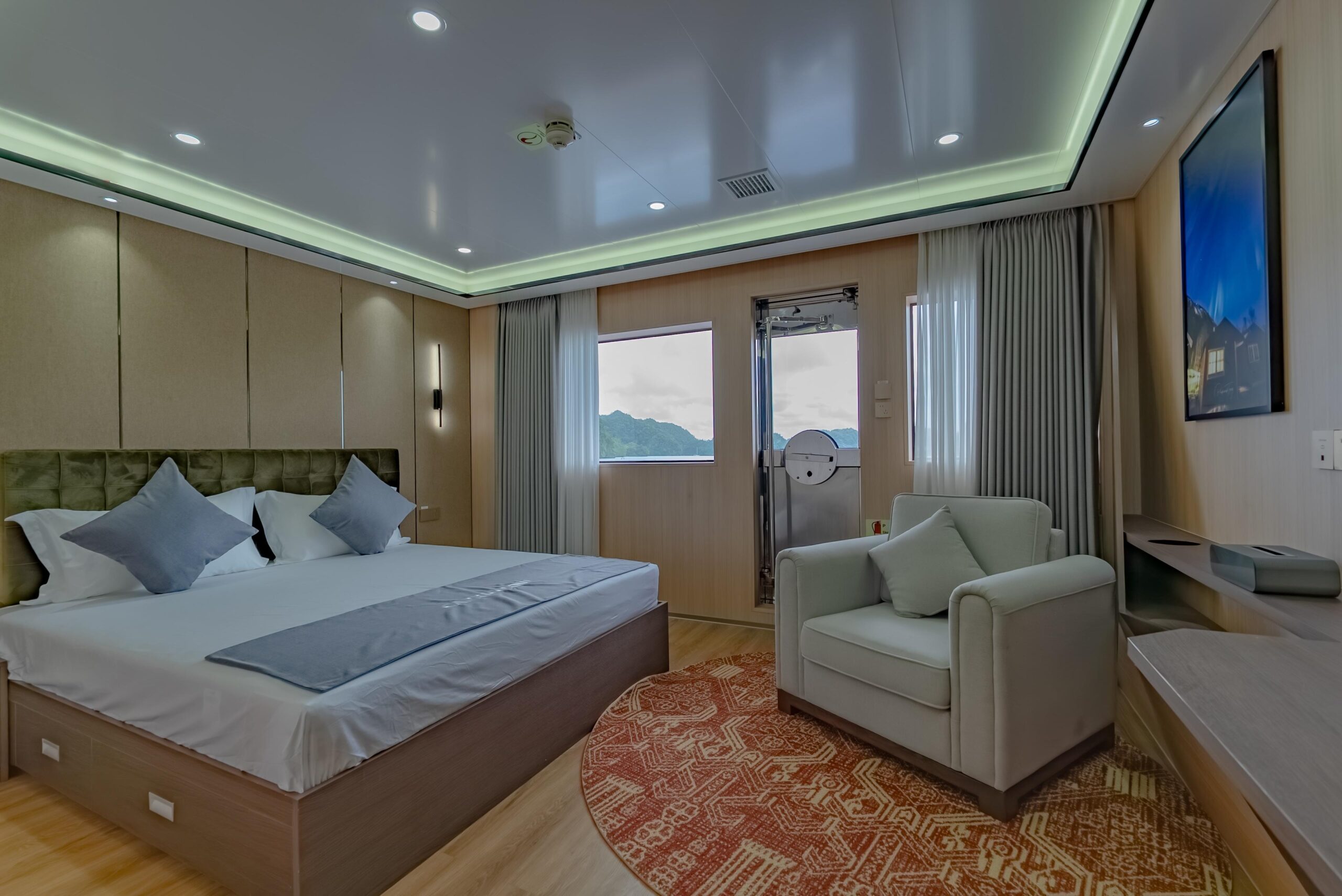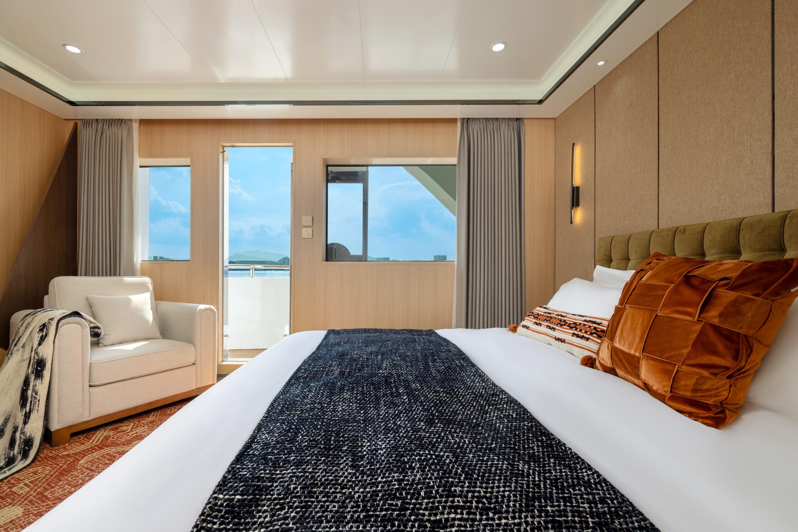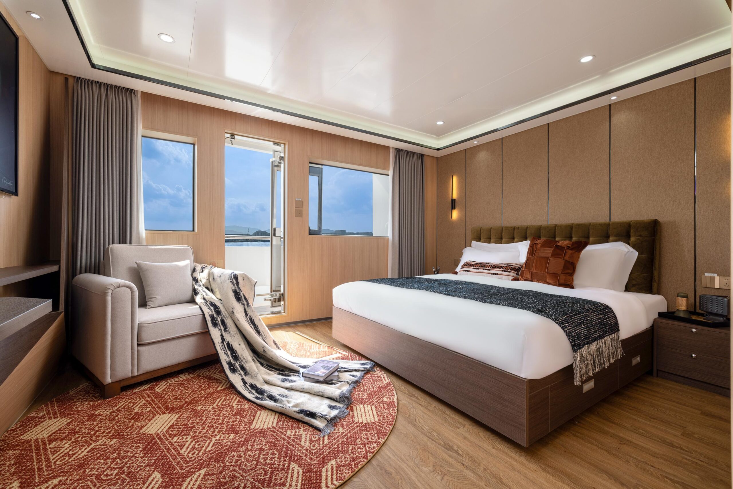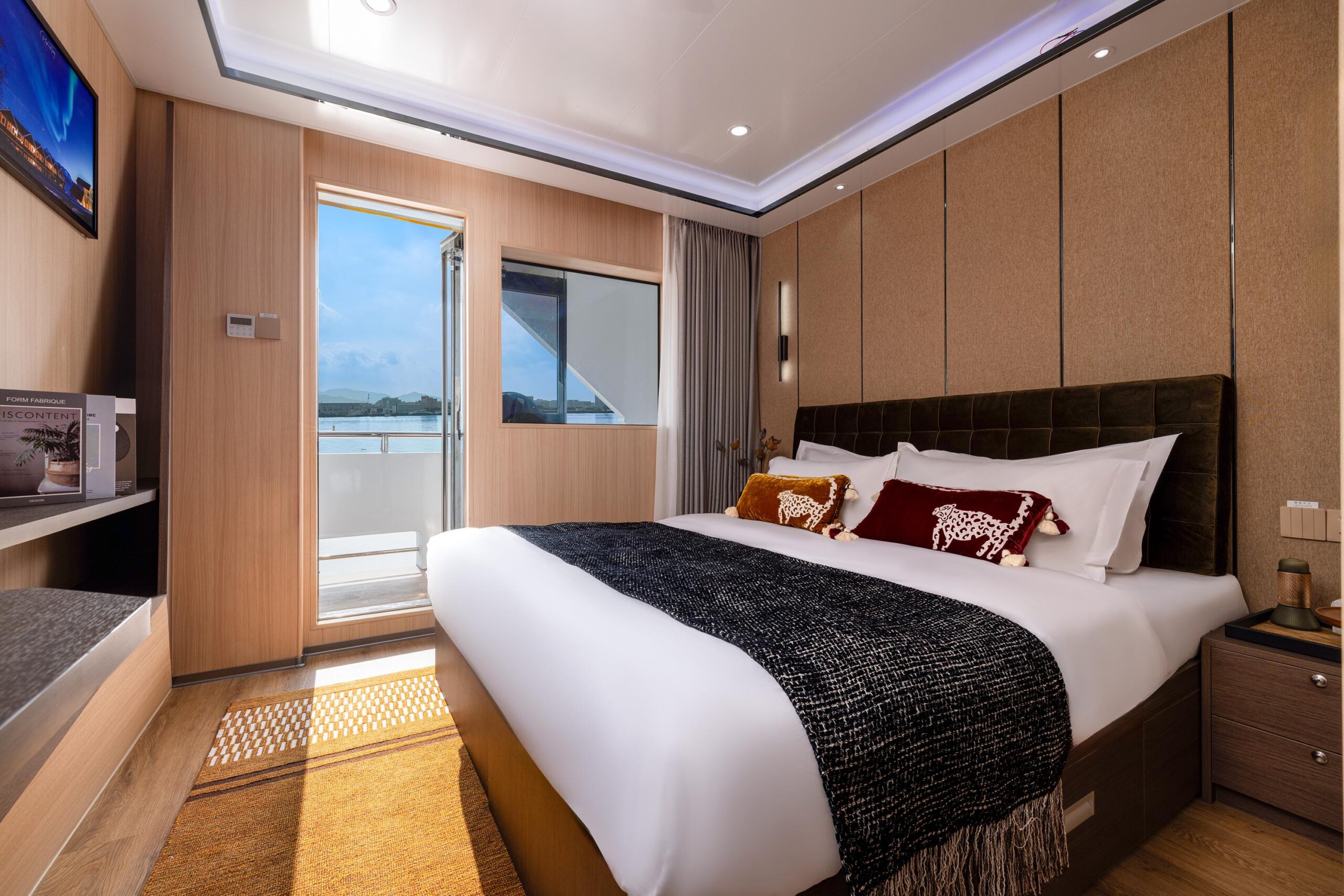 Четыре из этих кают имеют собственные балконы, что особенно привлекательно как для чартеров, так и для частных владельцев. Размещение позволяет принимать до 36 гостей на ночёвку с максимальным уровнем приватности и комфорта.