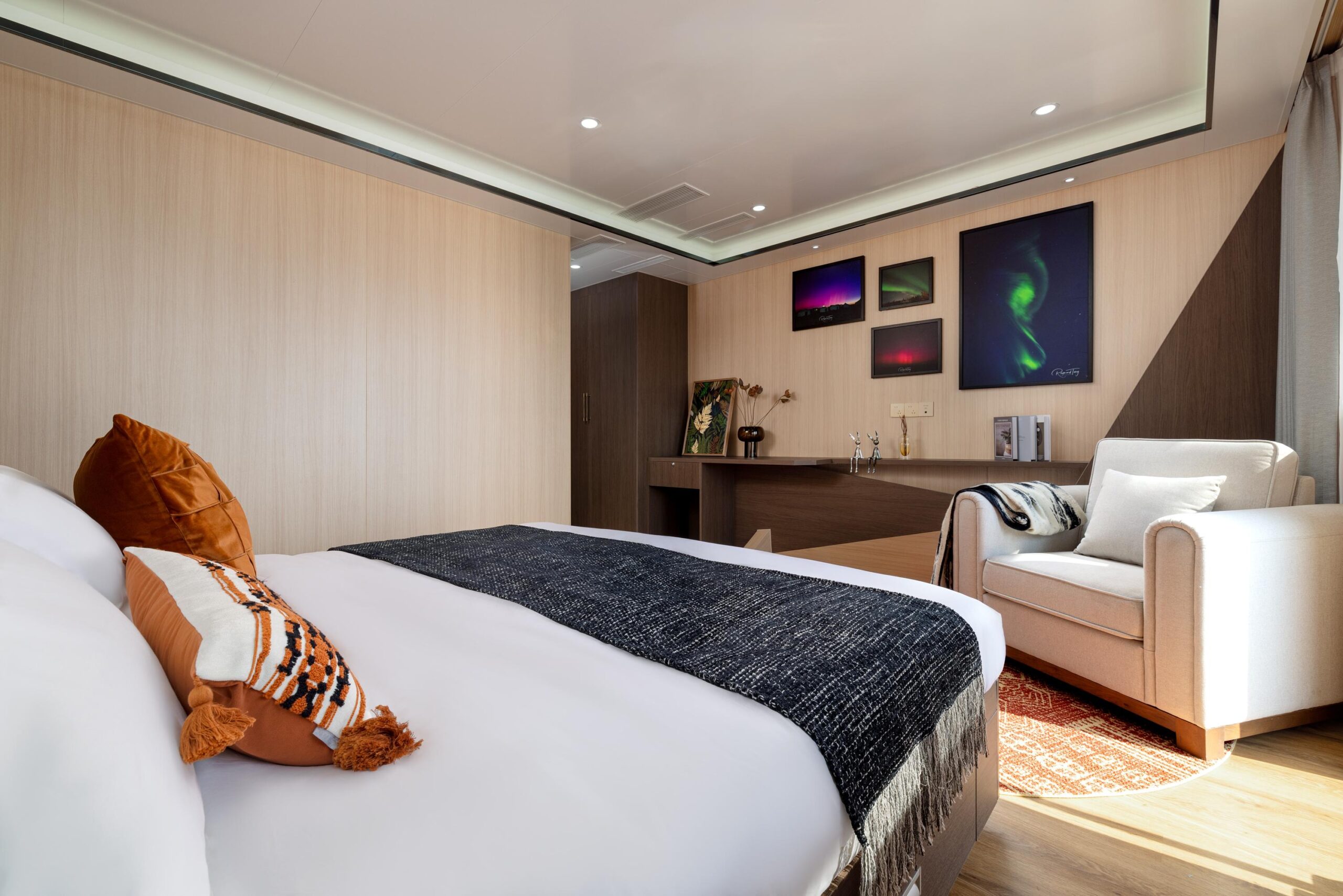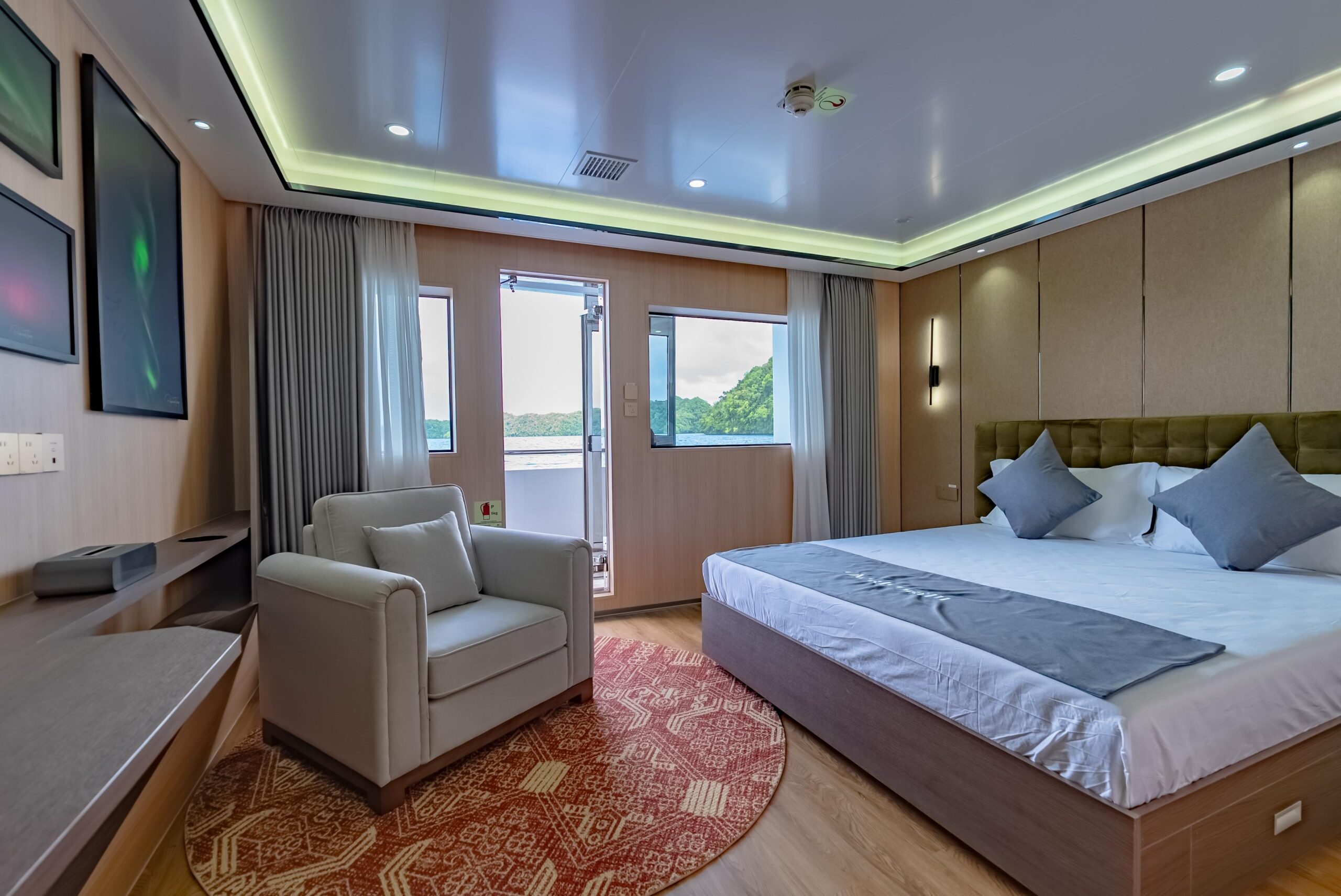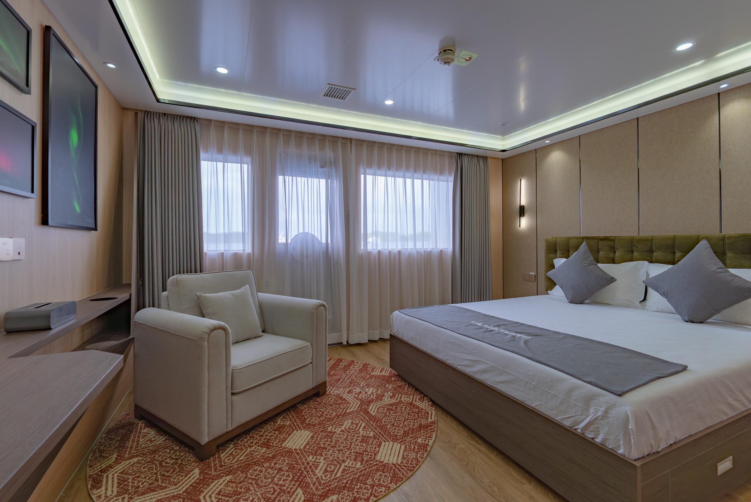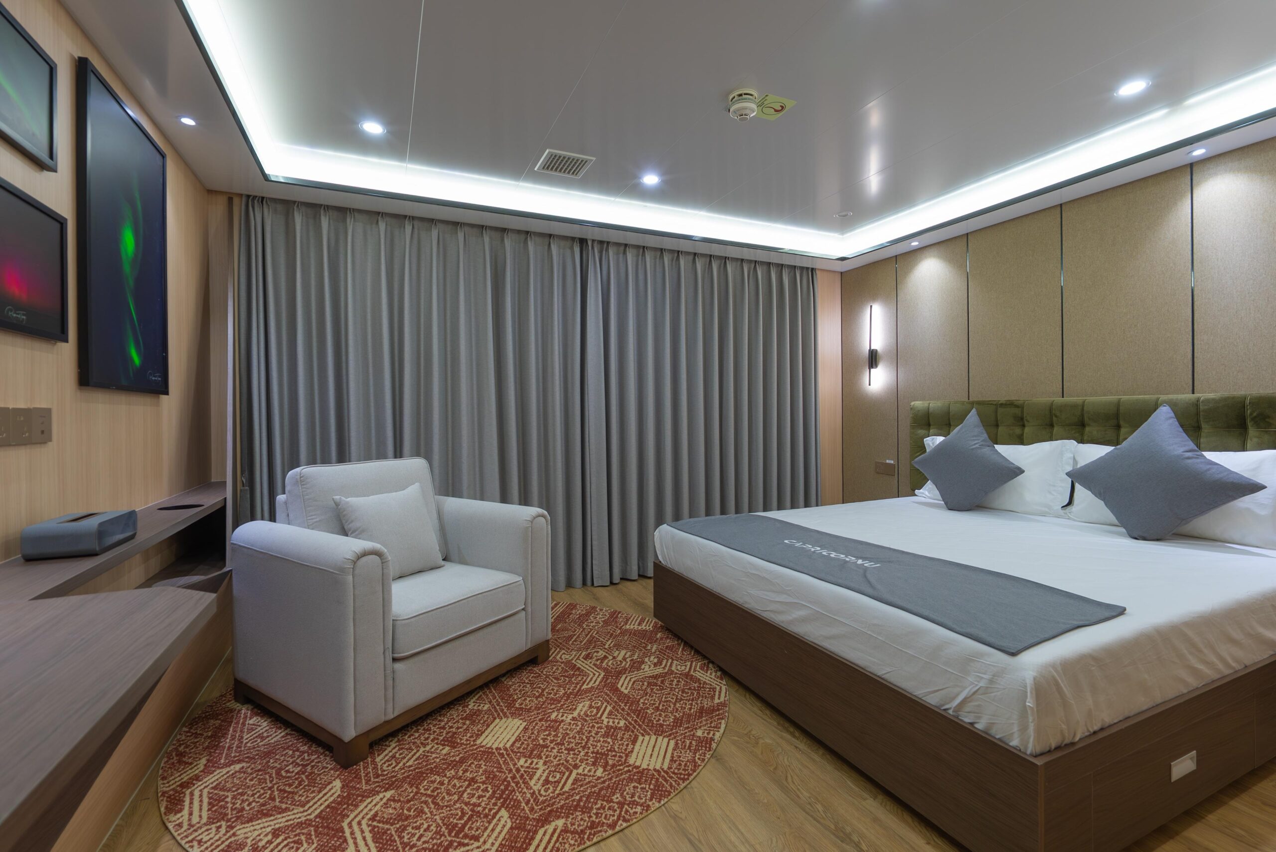 Четыре из этих кают имеют собственные балконы, что особенно привлекательно как для чартеров, так и для частных владельцев. Размещение позволяет принимать до 36 гостей на ночёвку с максимальным уровнем приватности и комфорта.