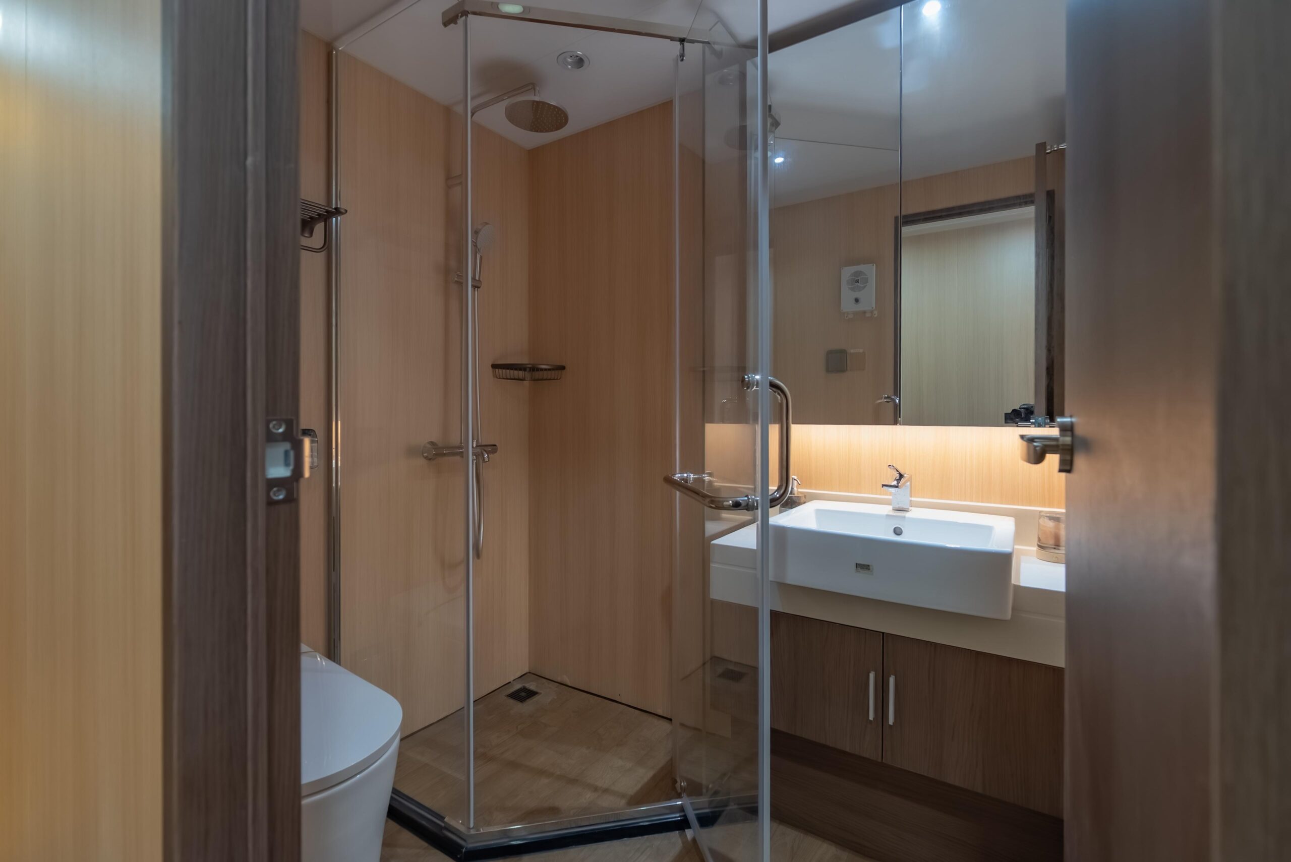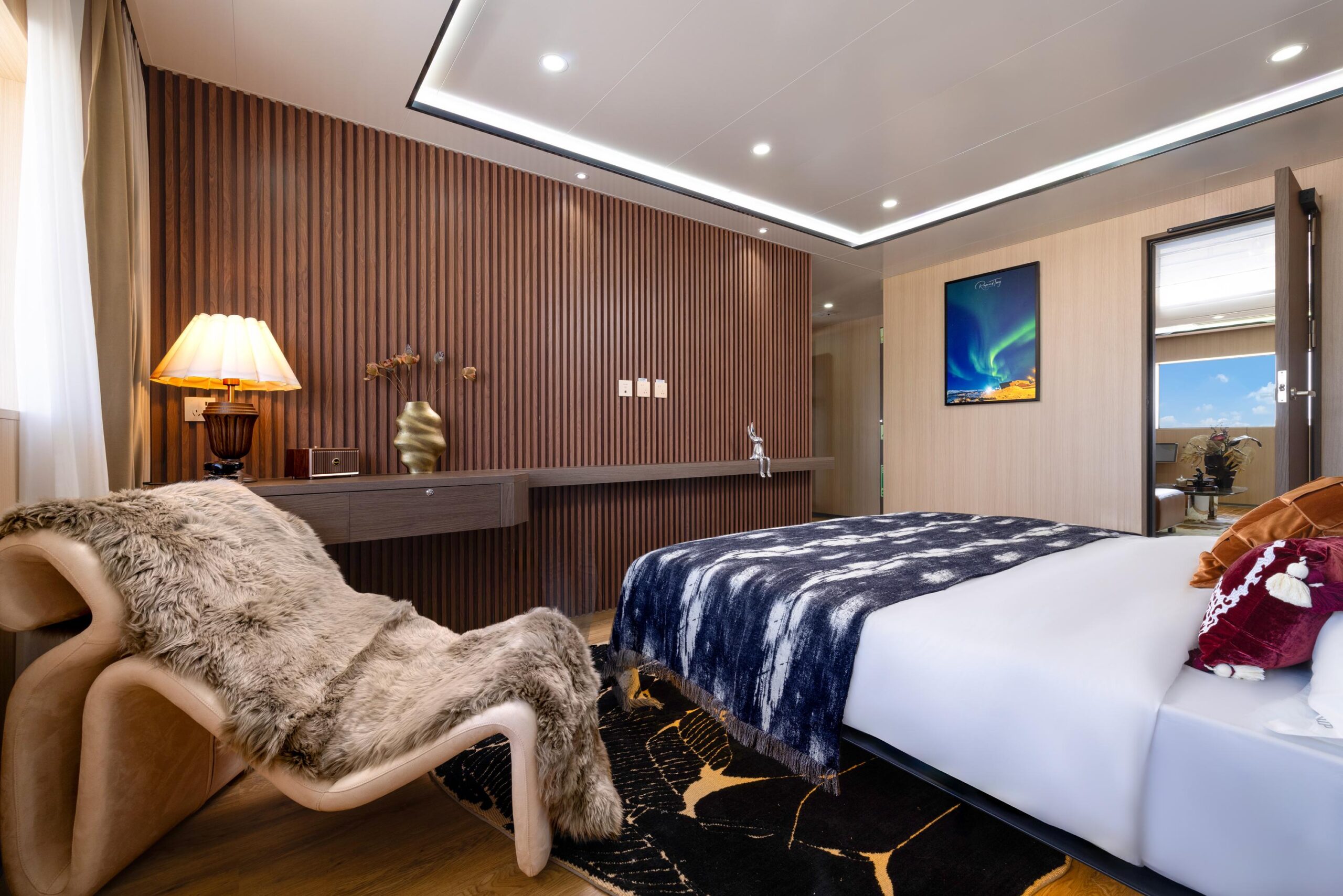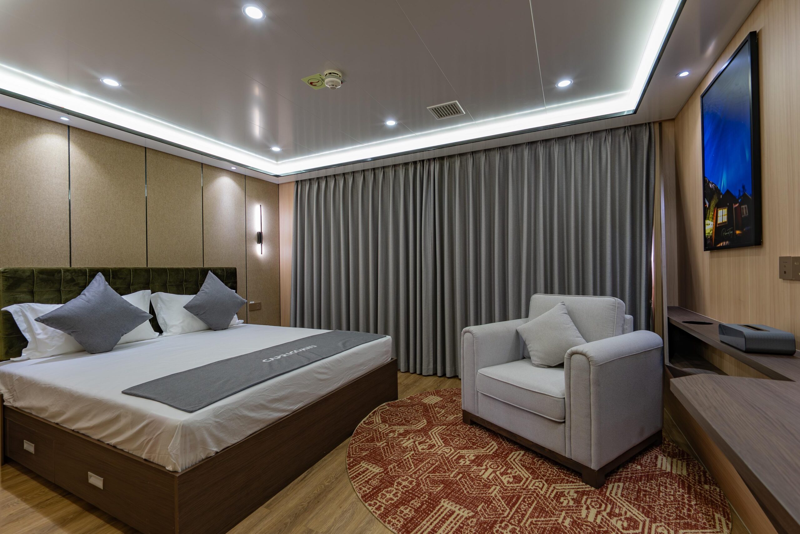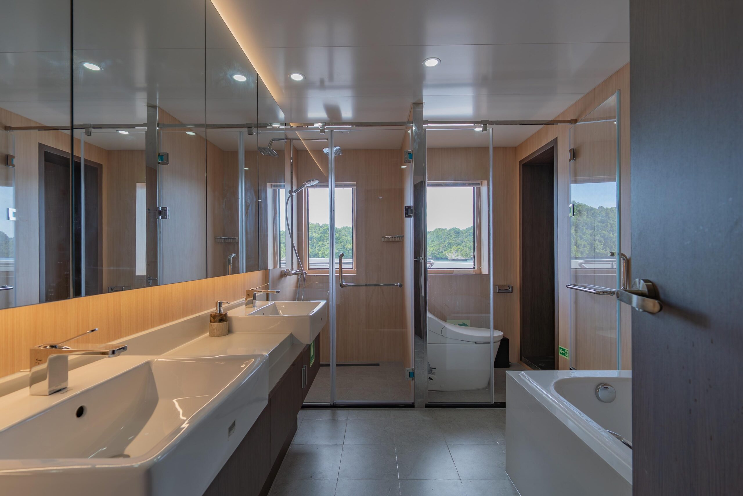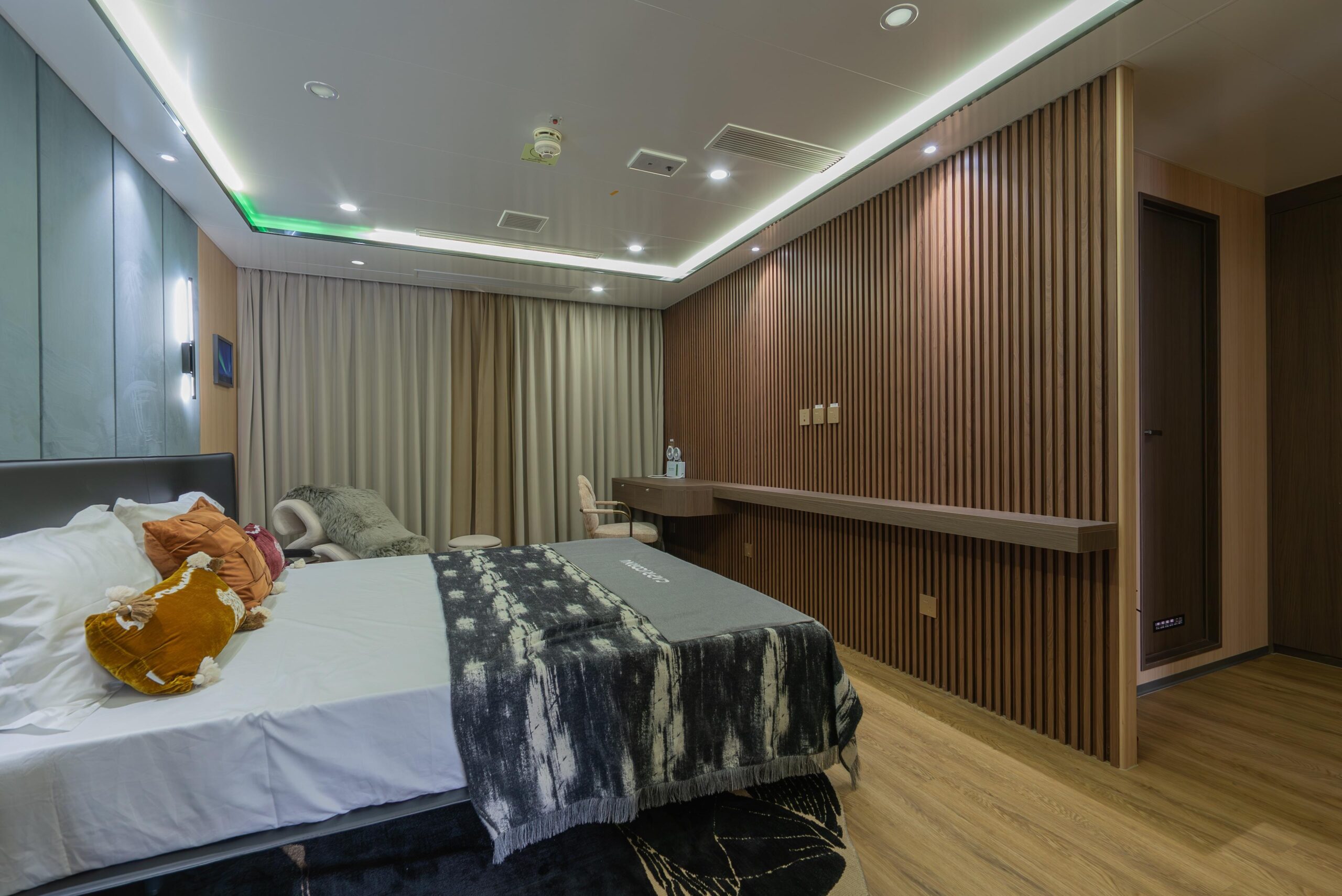 Четыре из этих кают имеют собственные балконы, что особенно привлекательно как для чартеров, так и для частных владельцев. Размещение позволяет принимать до 36 гостей на ночёвку с максимальным уровнем приватности и комфорта.