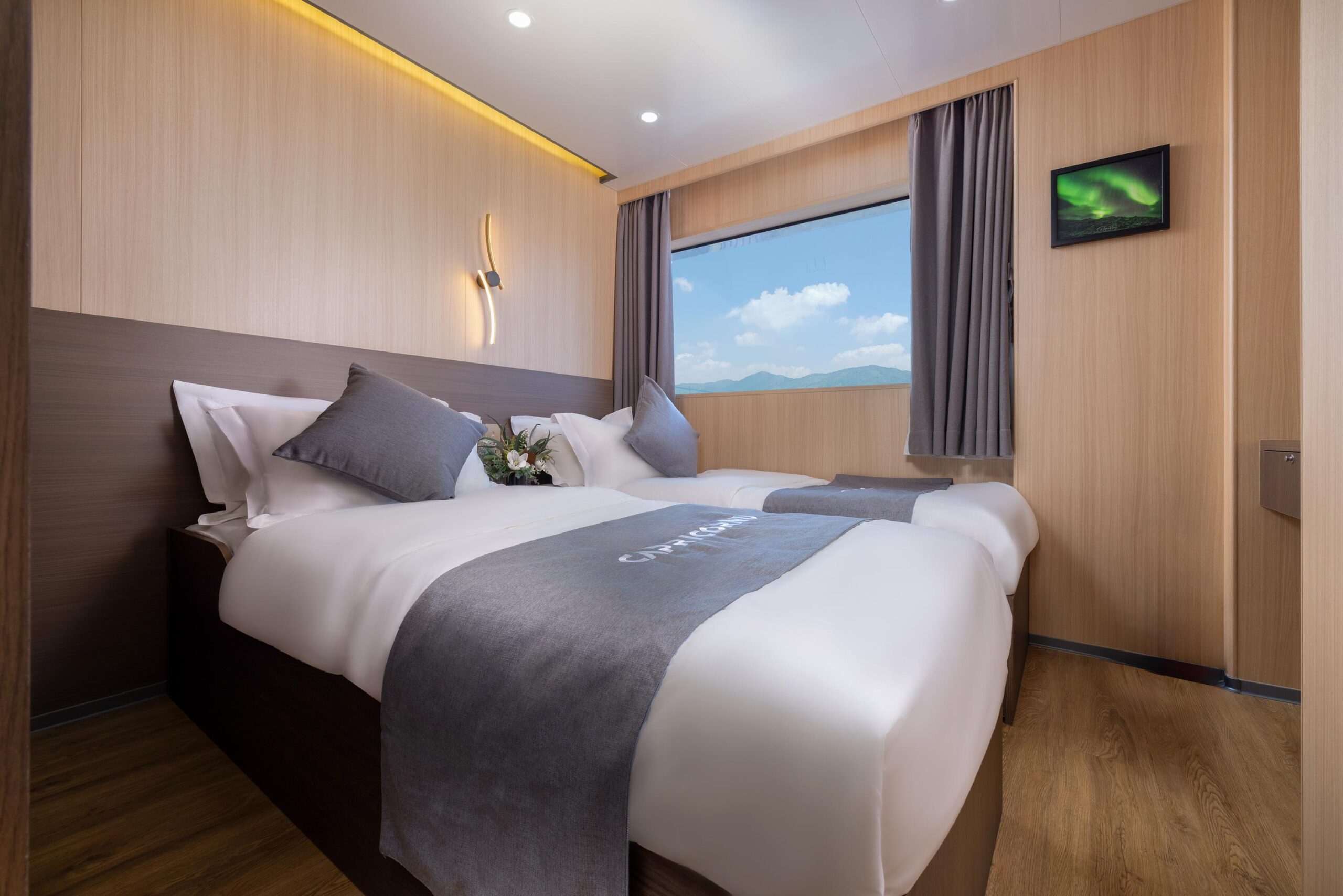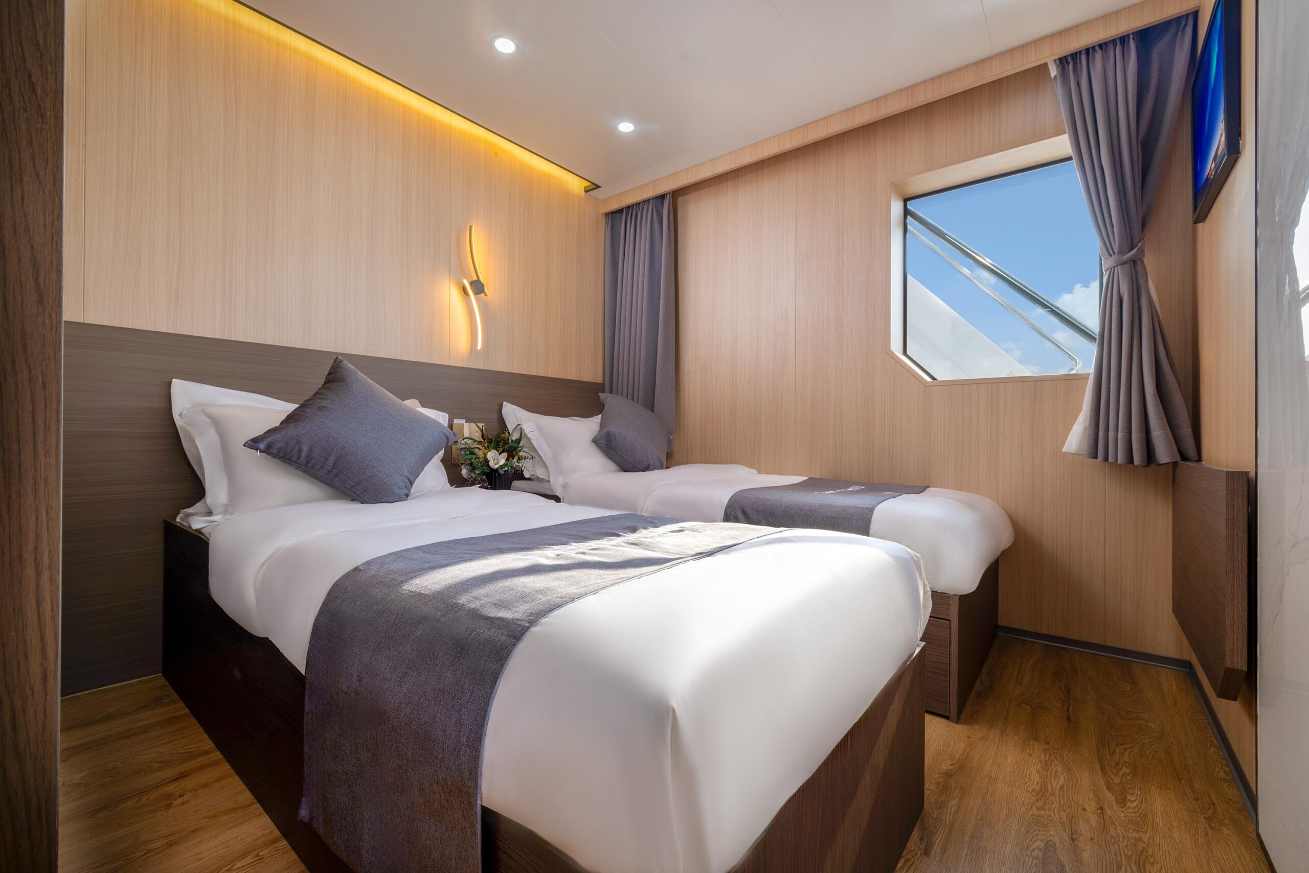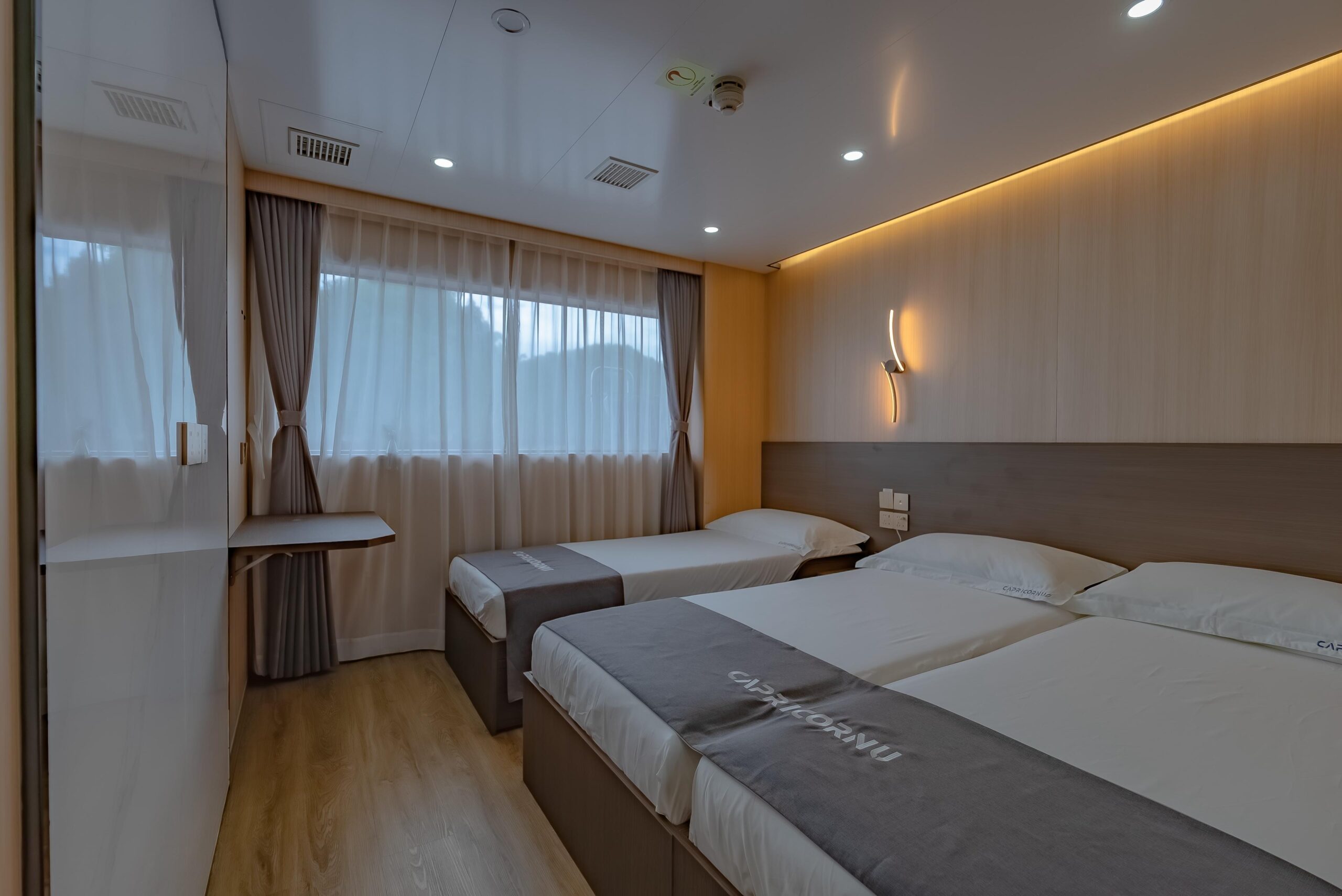 Оставшиеся четыре каюты включают две трансформируемые каюты с двумя кроватями и две двухместные каюты.