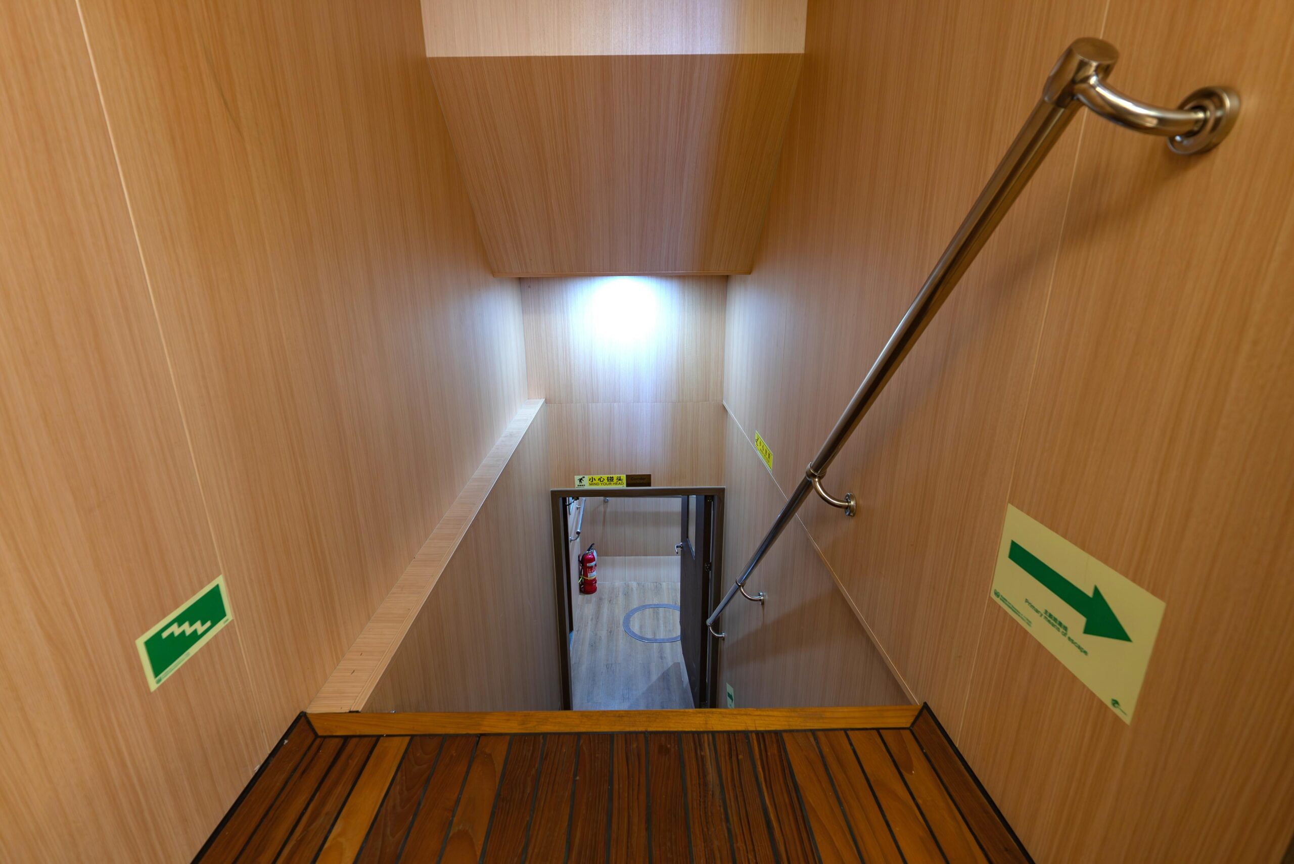 Также на этой палубе расположены два дневных санузла, коммерческая прачечная с шестью стиральными и сушильными машинами, а также винтовая лестница, ведущая на верхнюю палубу и в корпуса, где находятся камбуз, кладовые и помещения экипажа.