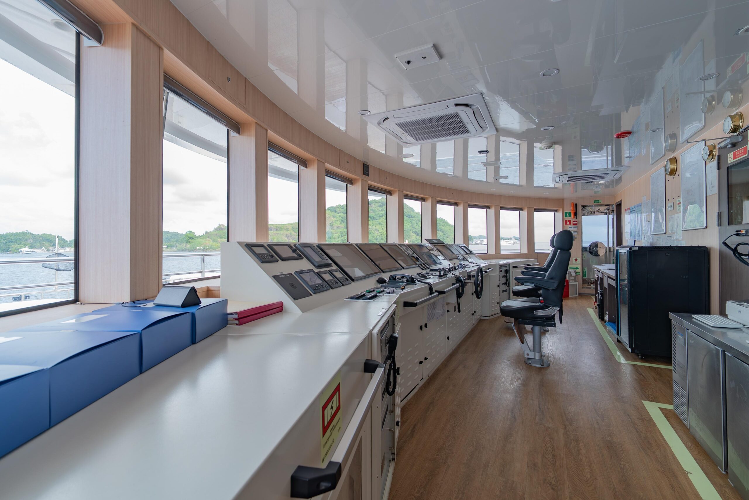 Коммерческая рулевая рубка оснащена современными навигационными системами с поддержкой ECDIS. По правому борту расположена каюта капитана для быстрого доступа к мостике.