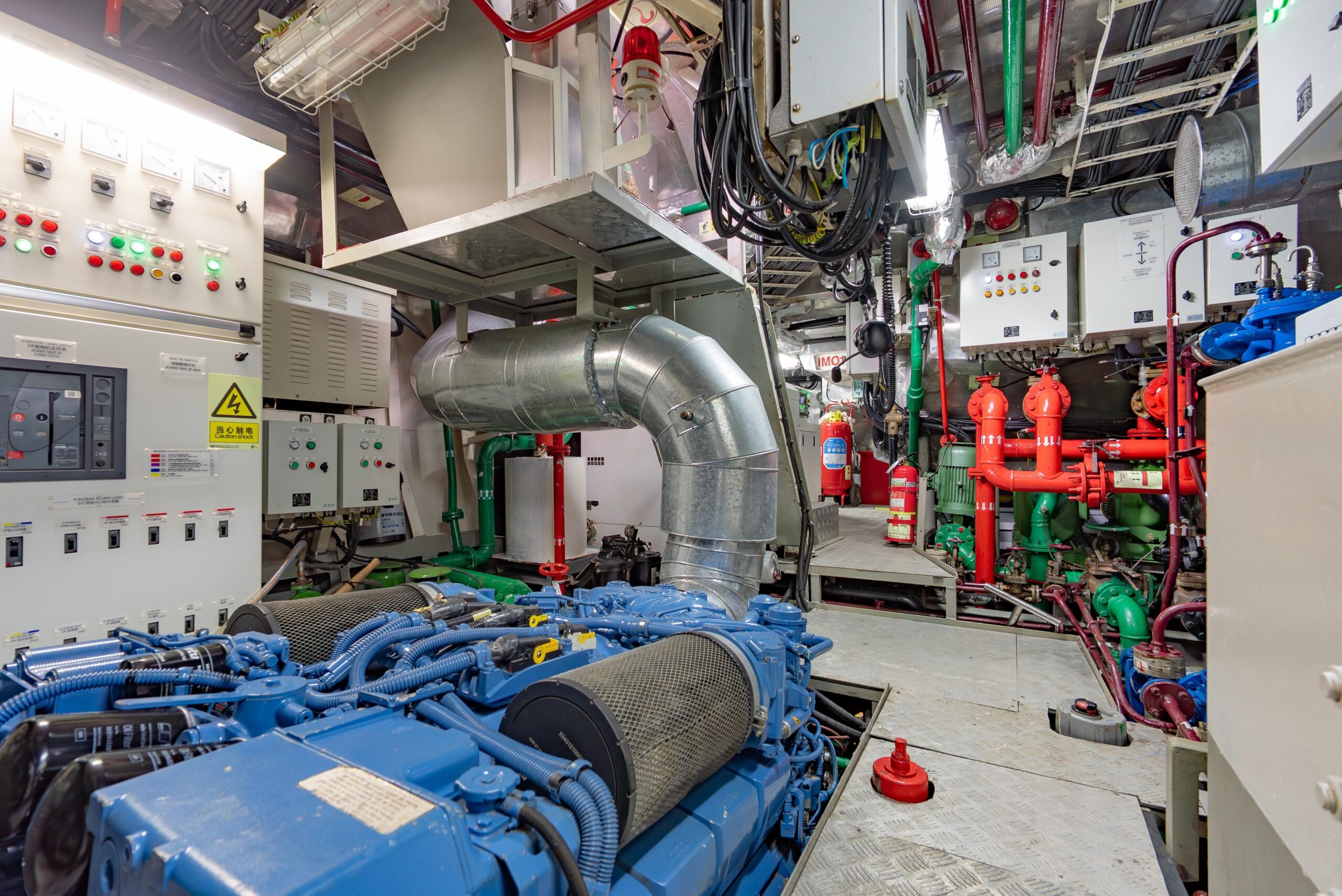 Установлены два дизель-генератора Ouma по 125 кВт, при этом один способен обеспечивать всю яхту при загрузке 75%. Дополнительно установлен резервный генератор мощностью 64 кВт.