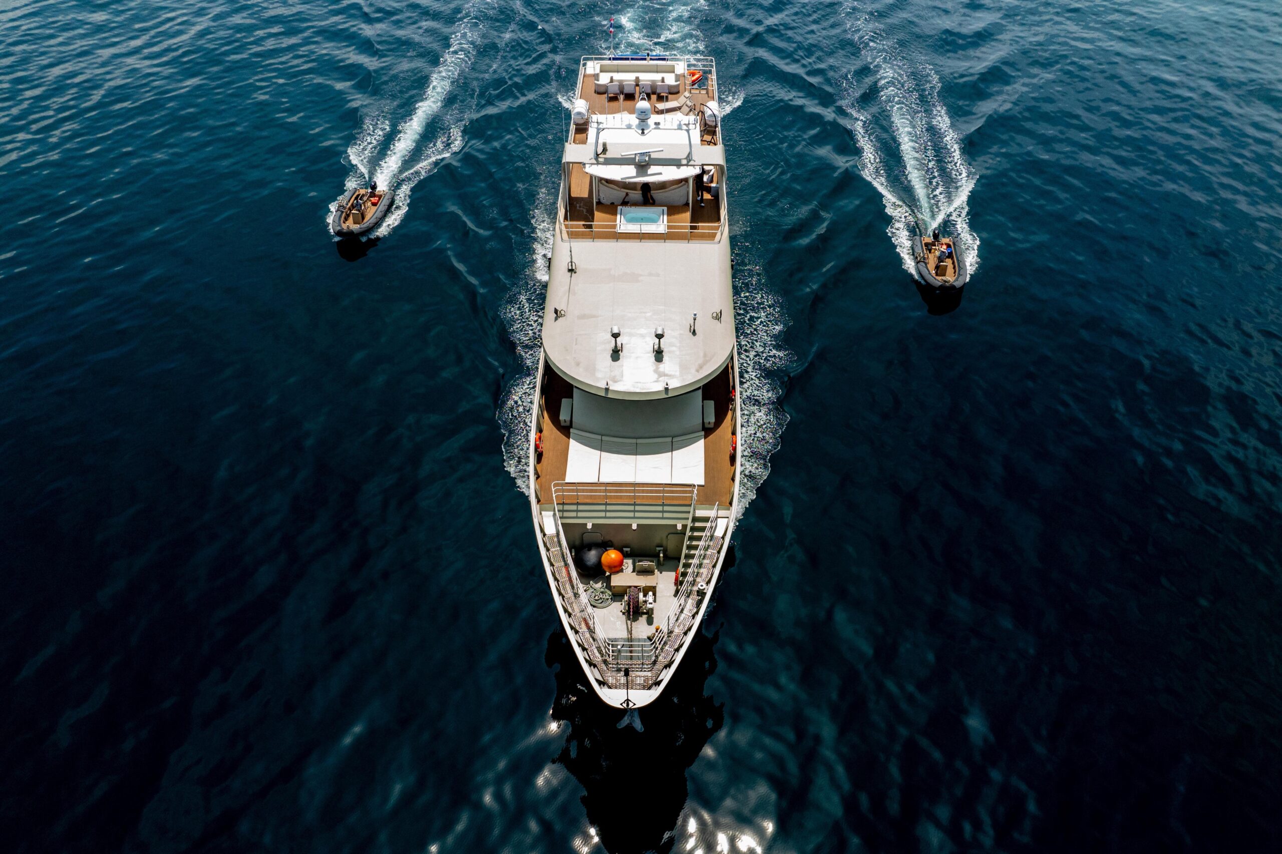Для совместного отдыха предусмотрен кинозал для спокойных вечеров и открытая солнечная палуба, где джакузи, солёный морской воздух и бескрайнее небо сливаются без спешки и отвлекающих факторов. Атмосфера говорит сама за себя — темп выбираете вы. После завершения сухого дока и повторного спуска на воду в ноябре 2025 года яхта полностью готова к эксплуатации.