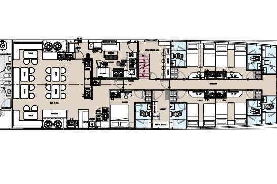 РАЗМЕЩЕНИЕ ДВАДЦАТИ ДВУХ ГОСТЕЙ В ОДИННАДЦАТИ КАЮТАХ С ВАННЫМИ КОМНАТАМИ