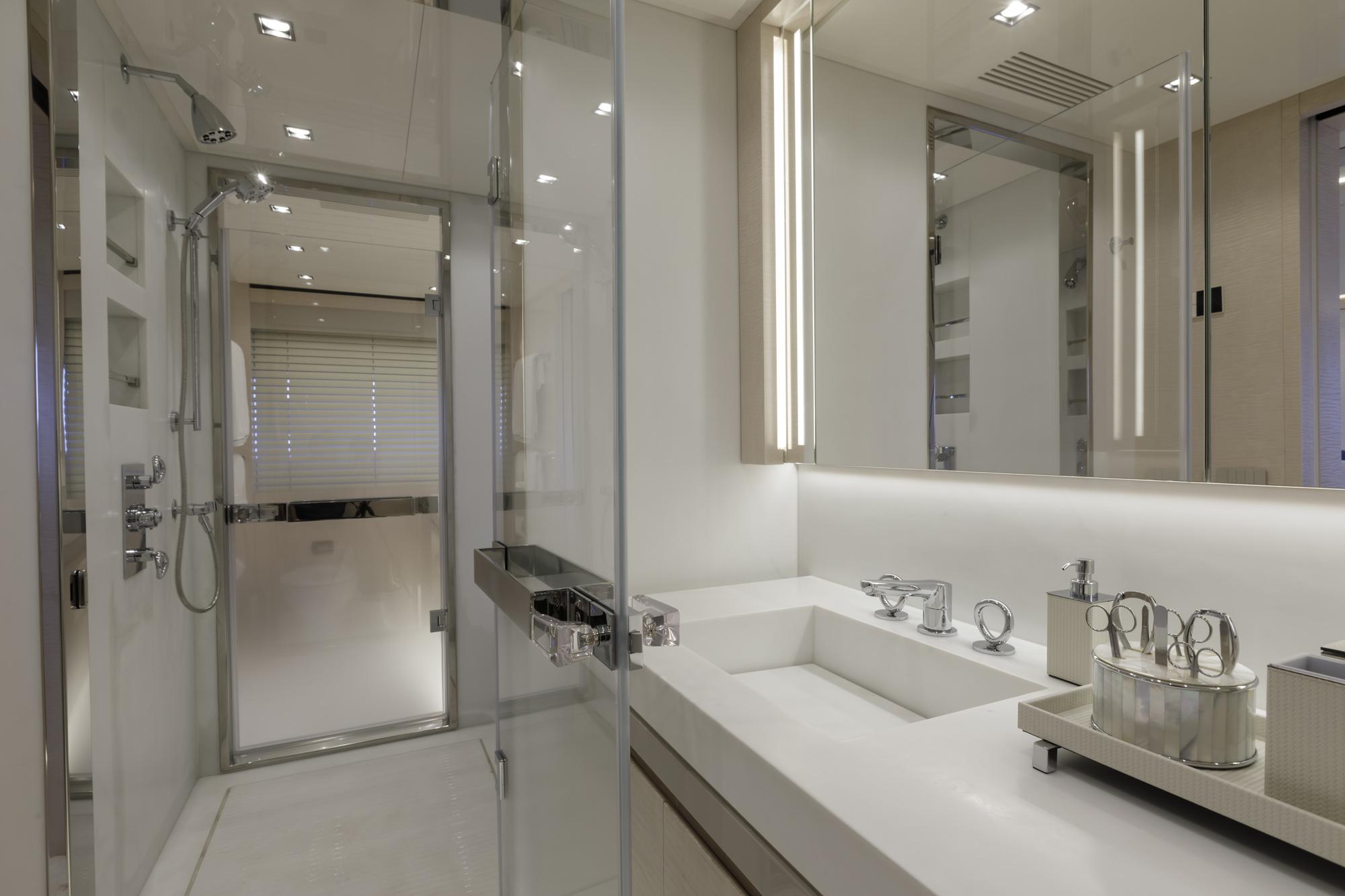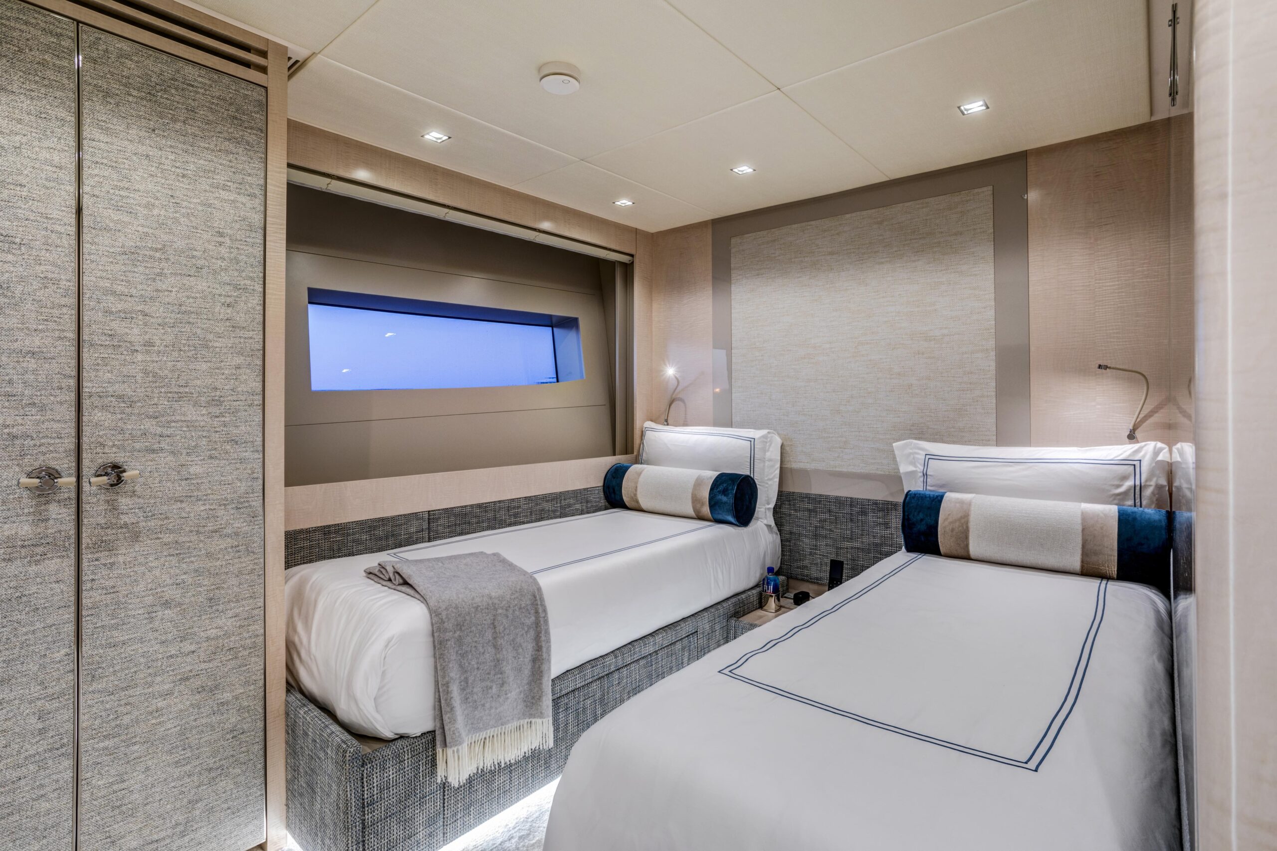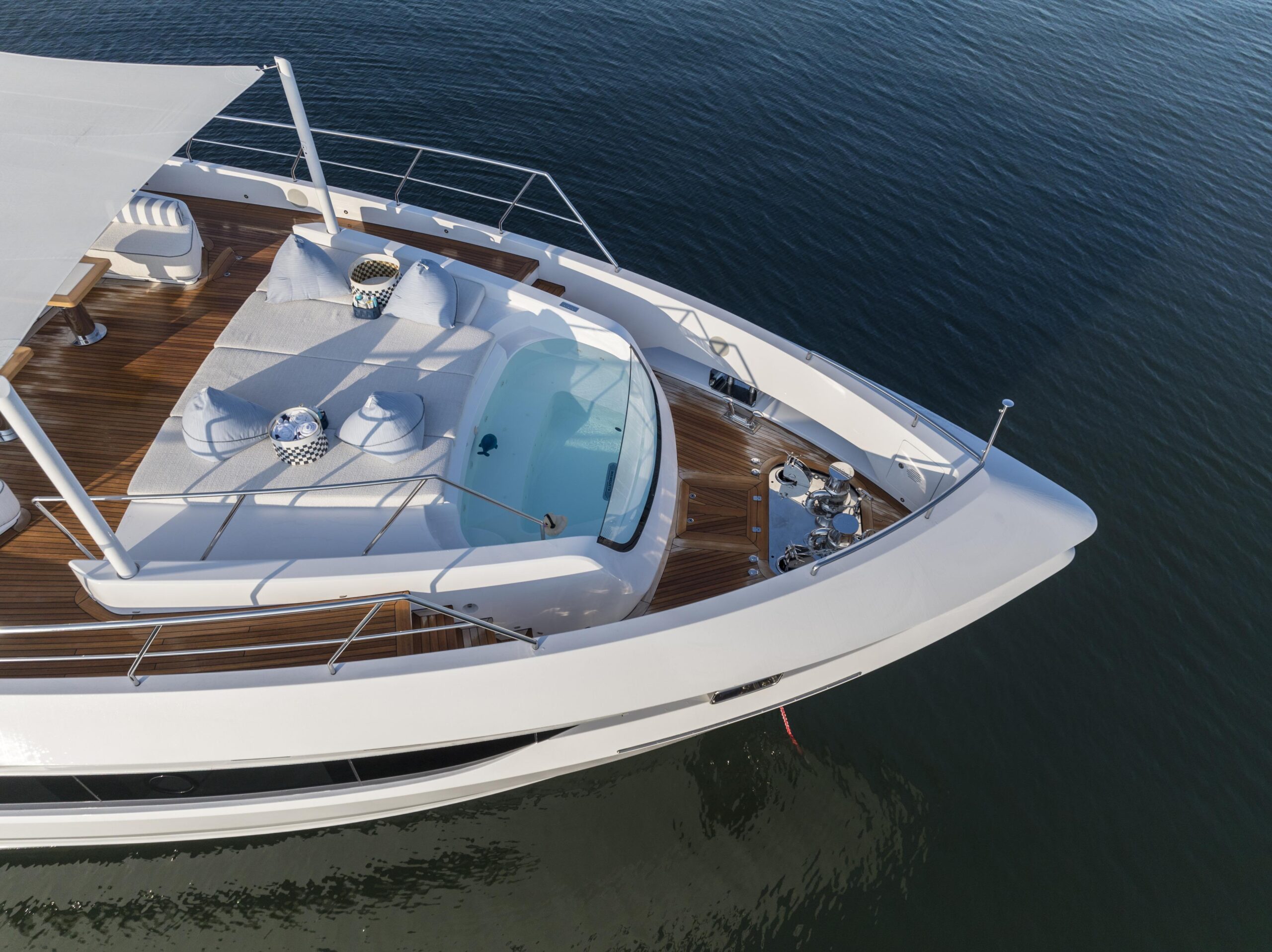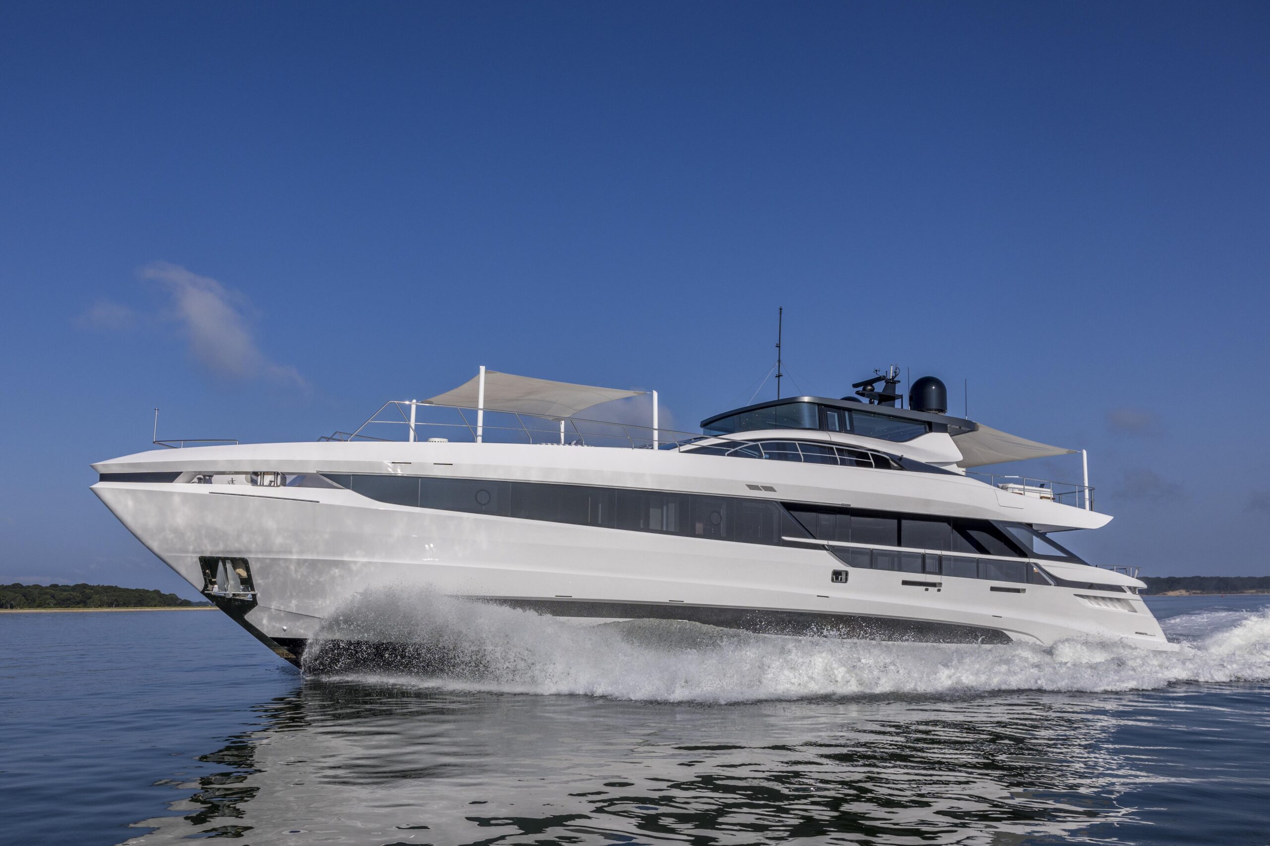 Главные двигатели: Четыре дизельных двигателя Volvo Penta D13-1000 IB – 735 кВт (~1000 л.с.) при 2400 об/мин. Стандартная полная гарантия действует до 31.08.2025, на основные компоненты – до 31.08.2028, с возможностью продления.