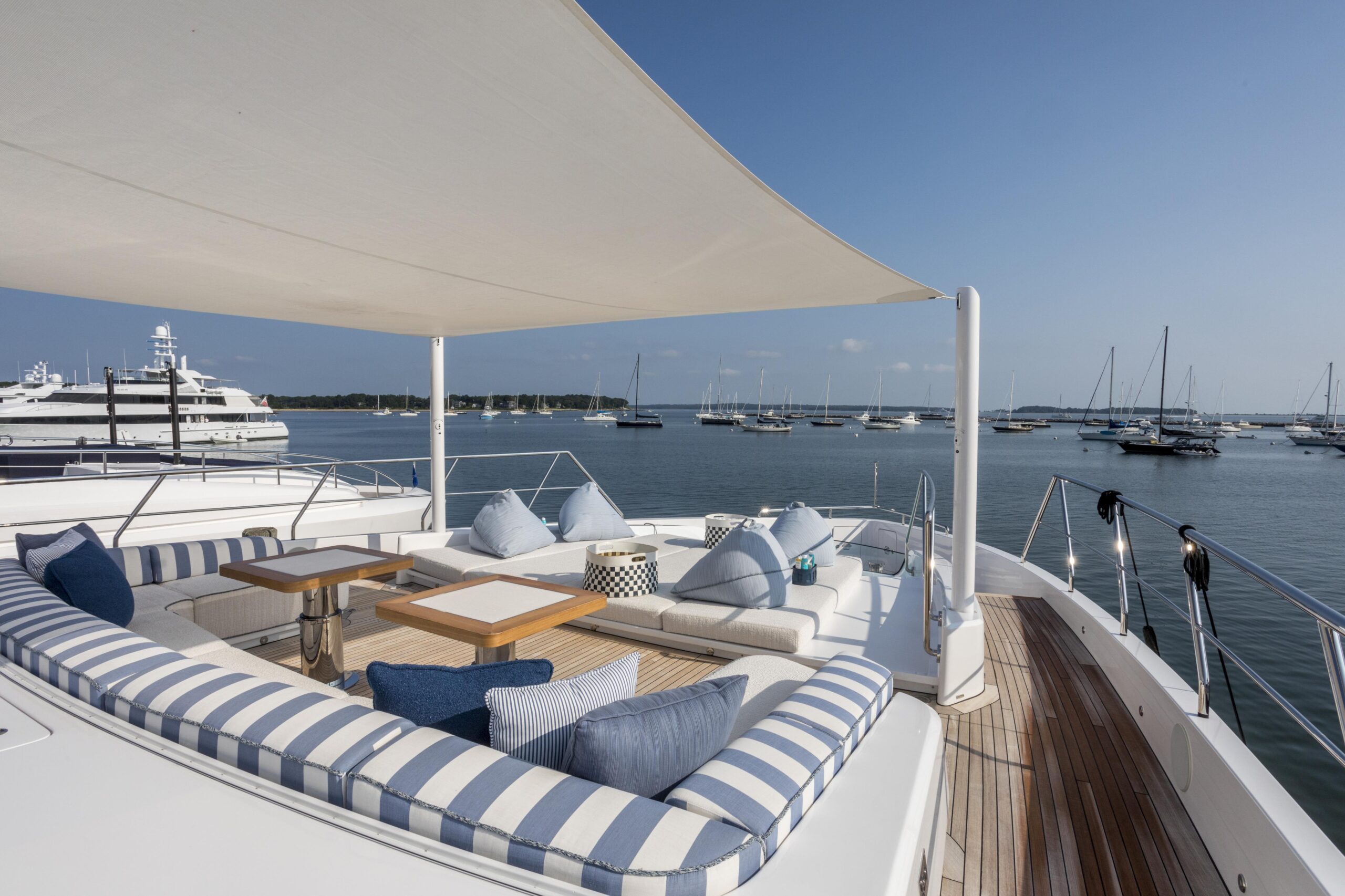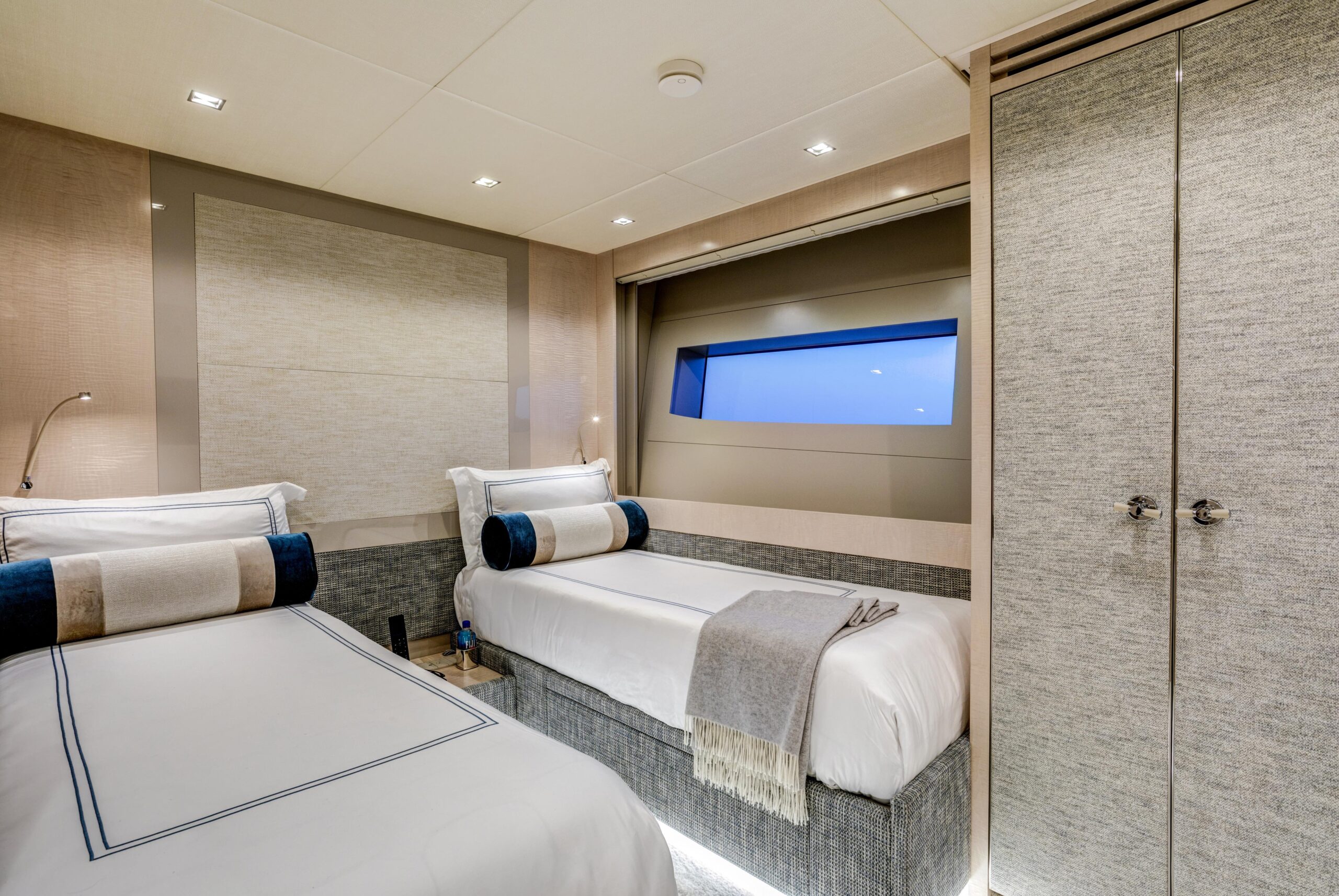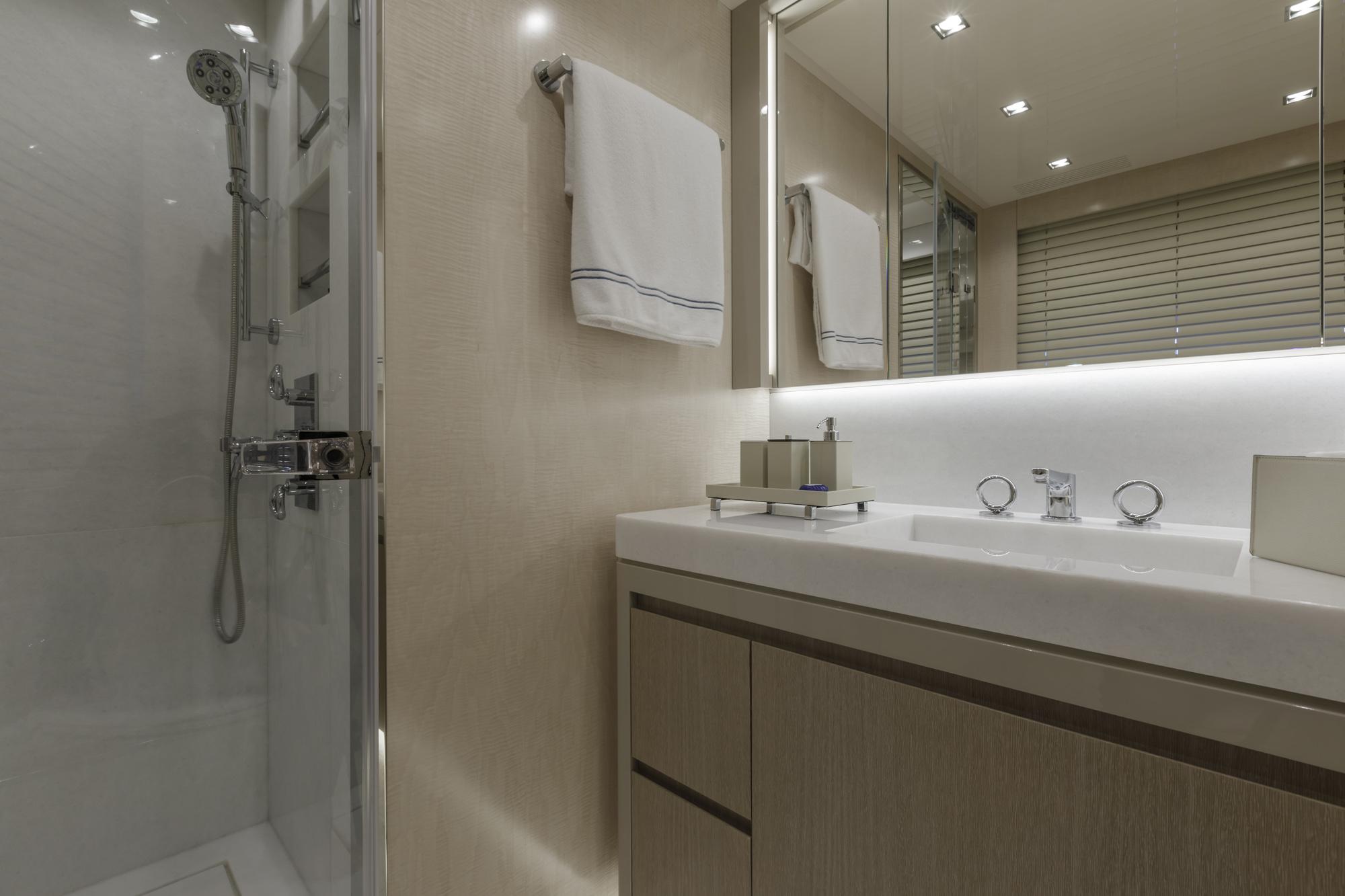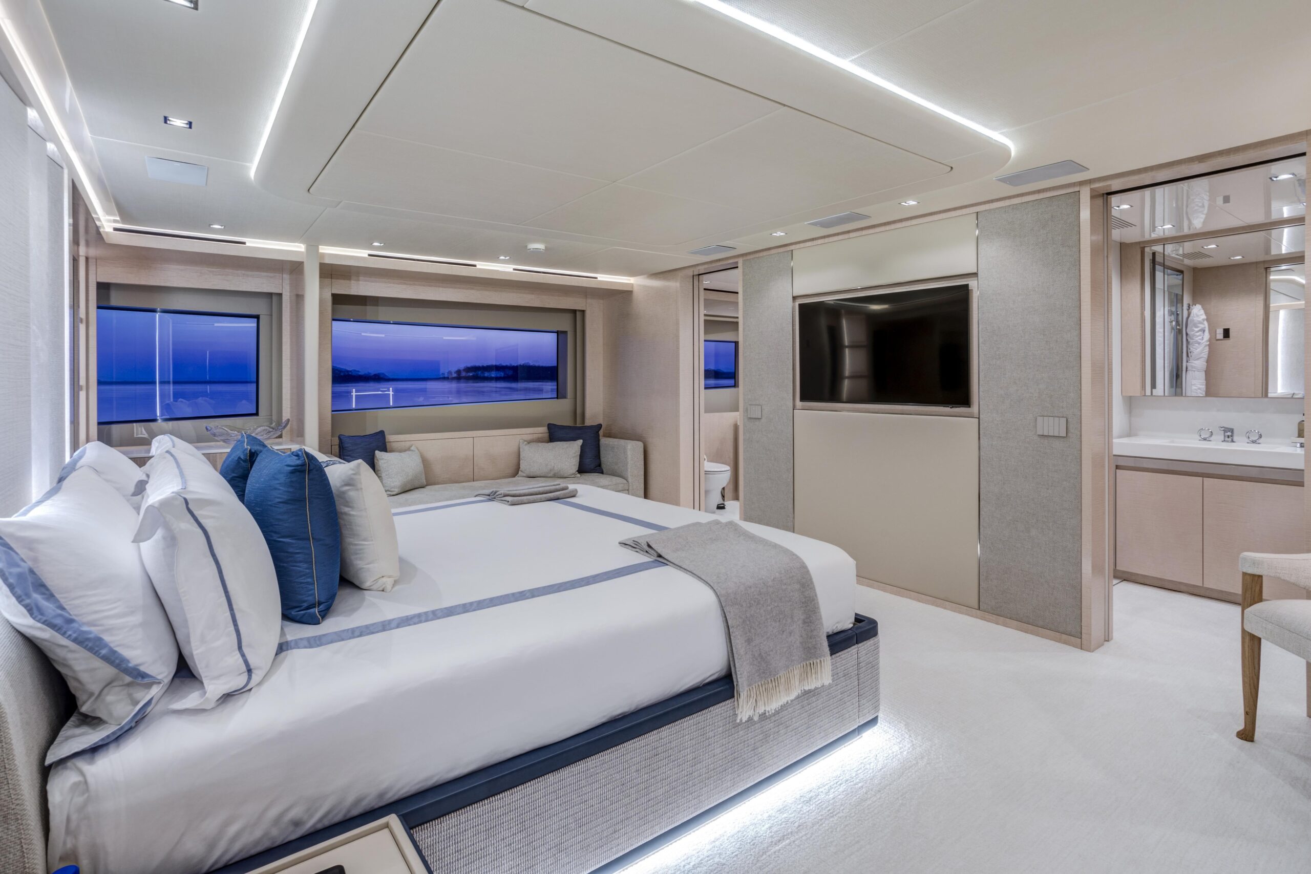 Главные двигатели: Четыре дизельных двигателя Volvo Penta D13-1000 IB – 735 кВт (~1000 л.с.) при 2400 об/мин. Стандартная полная гарантия действует до 31.08.2025, на основные компоненты – до 31.08.2028, с возможностью продления.