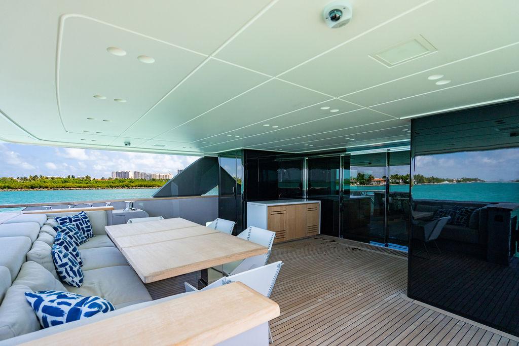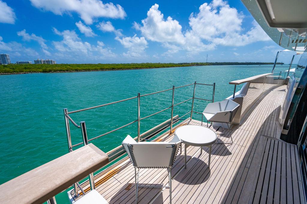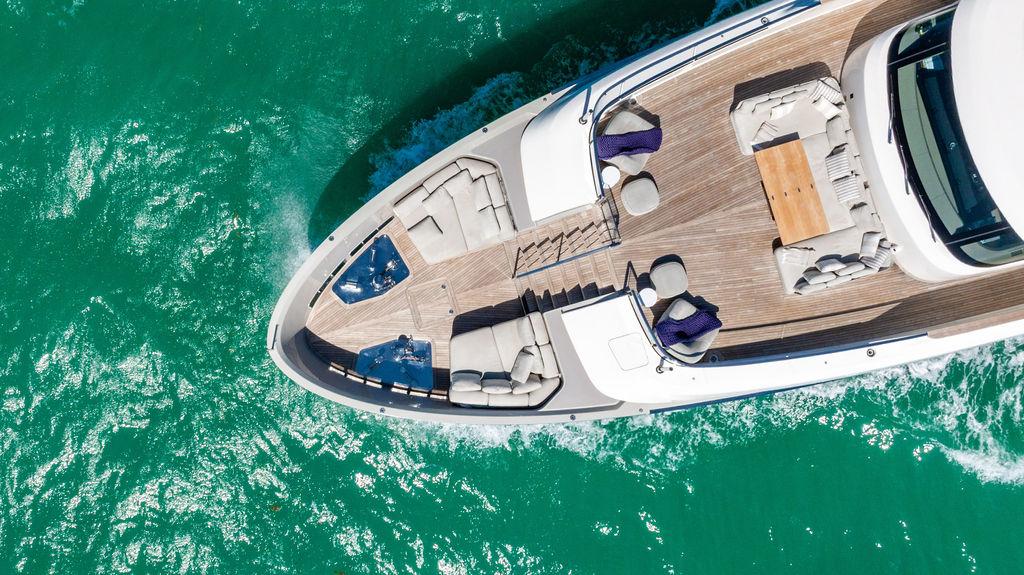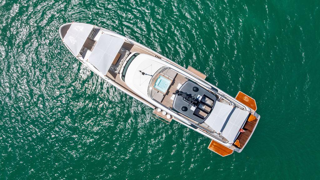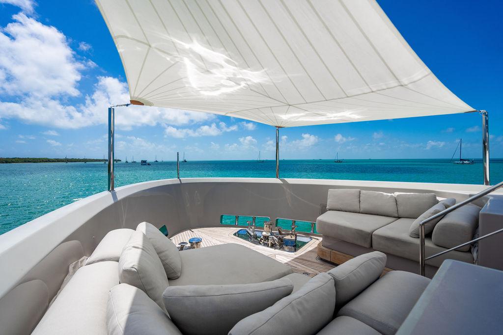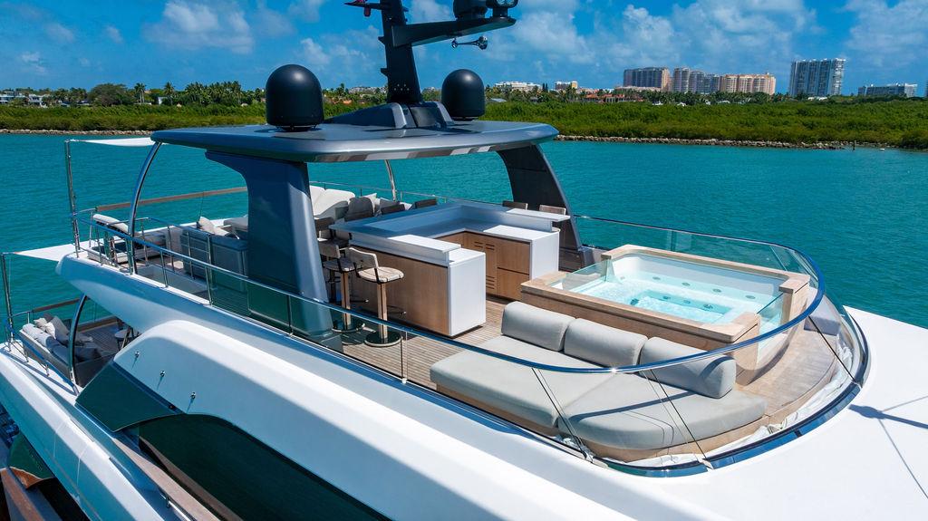 • Солнечная палуба: Верхняя «корона» яхты — sundeck для загара и неформальных приёмов у бара, с превосходными видами и джакузи.