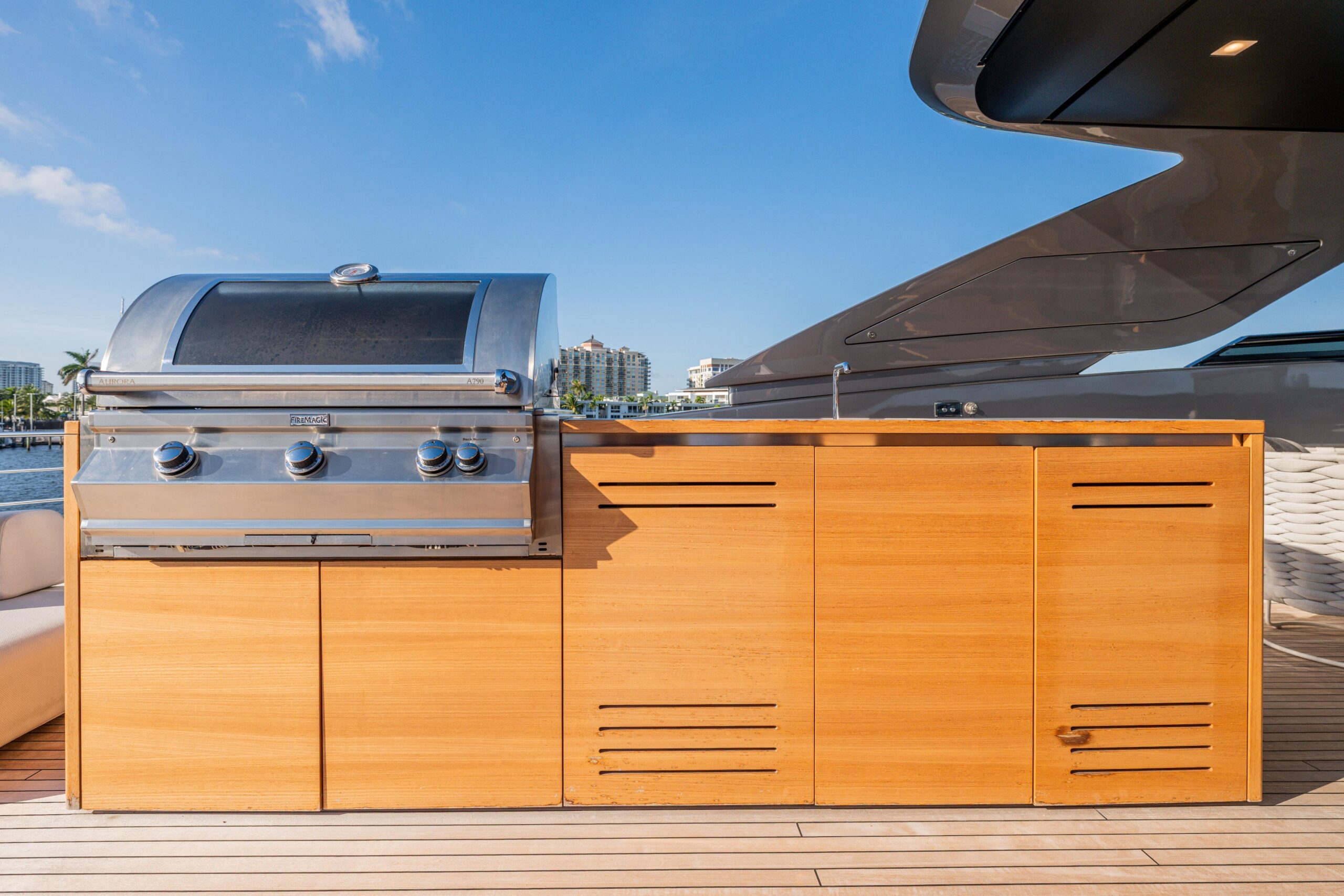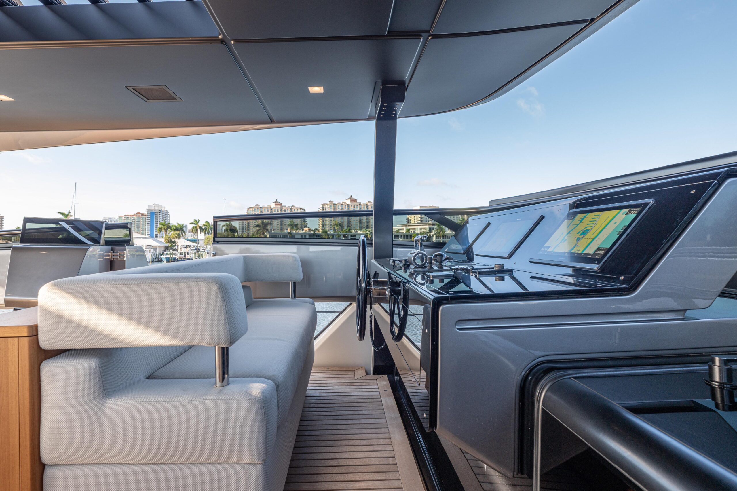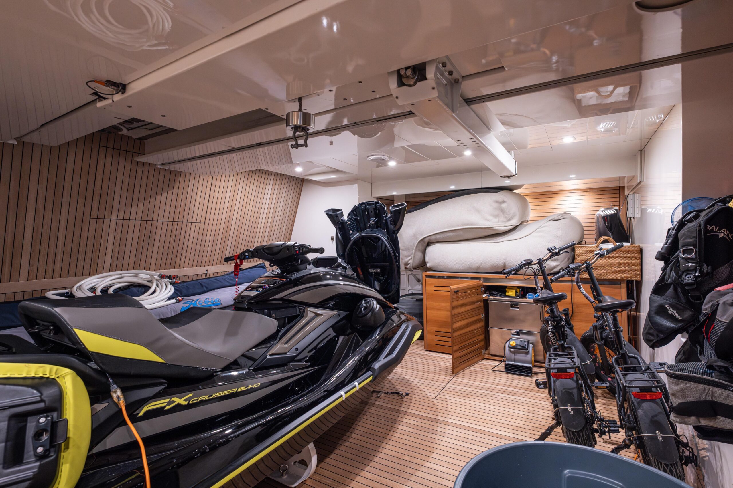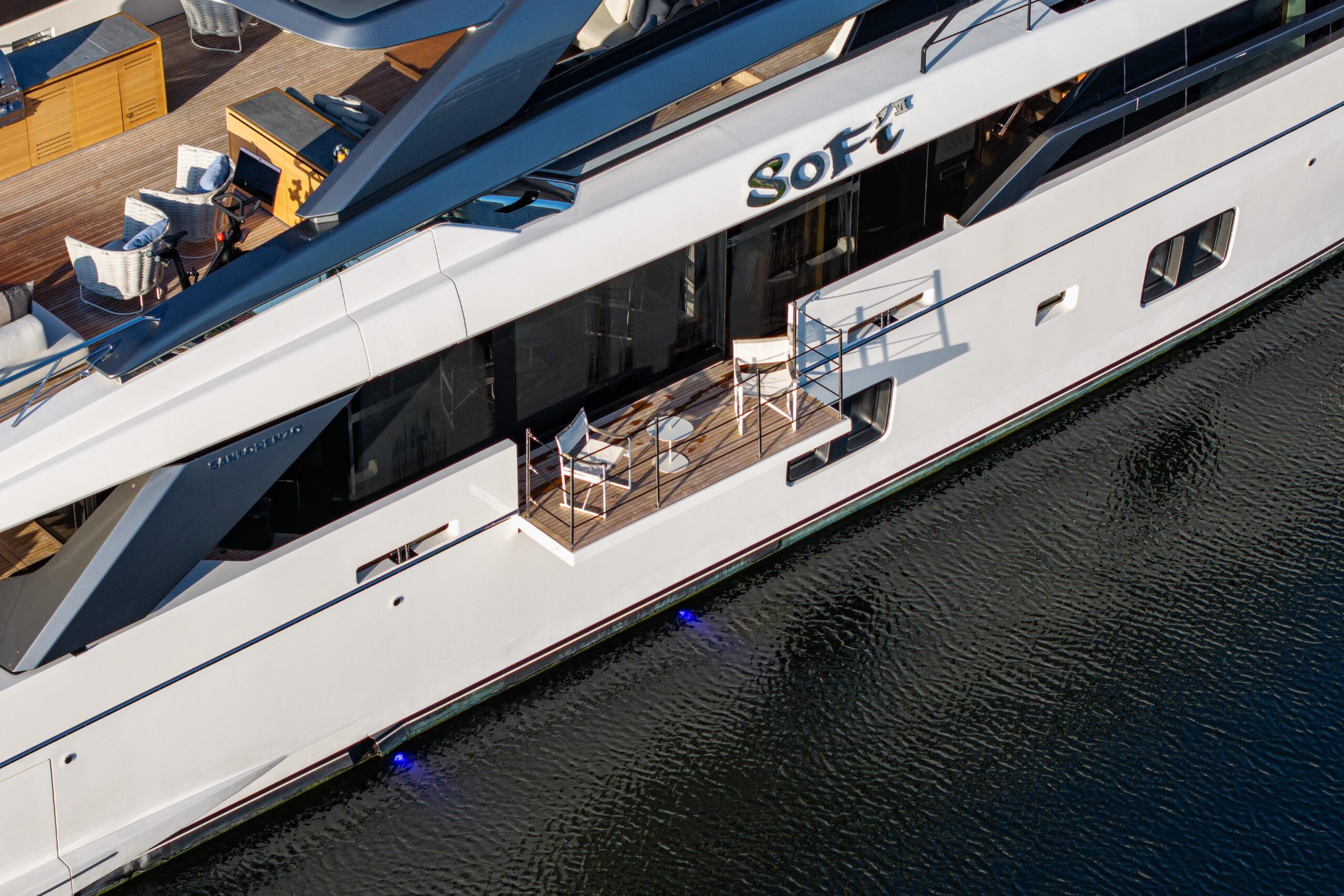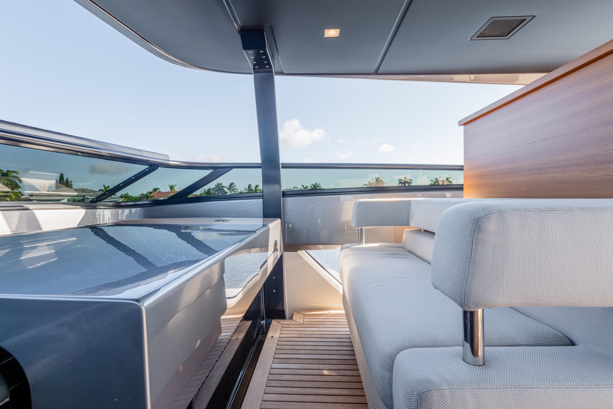 Яхта располагает несколькими зонами отдыха на открытом воздухе, включая просторный флайбридж и хорошо оборудованную кормовую палубу, идеально подходящие для принятия солнечных ванн, ужинов и наслаждения видами. Гидравлическая купальная платформа обеспечивает удобный доступ к воде для купания и водных развлечений.