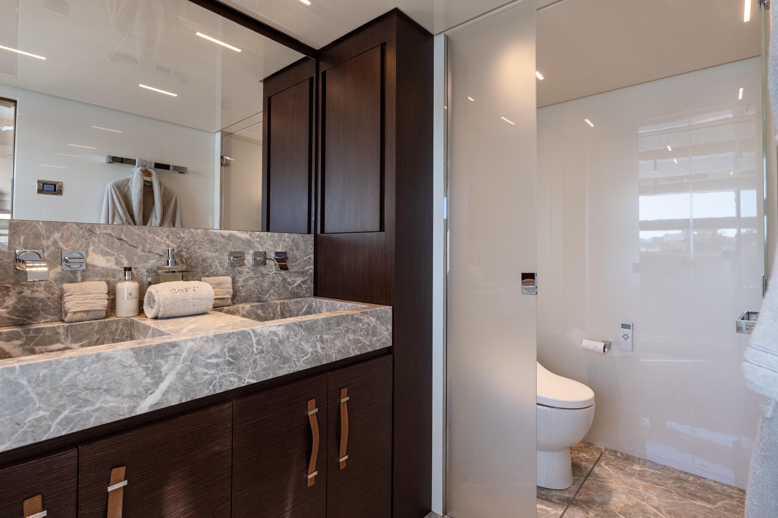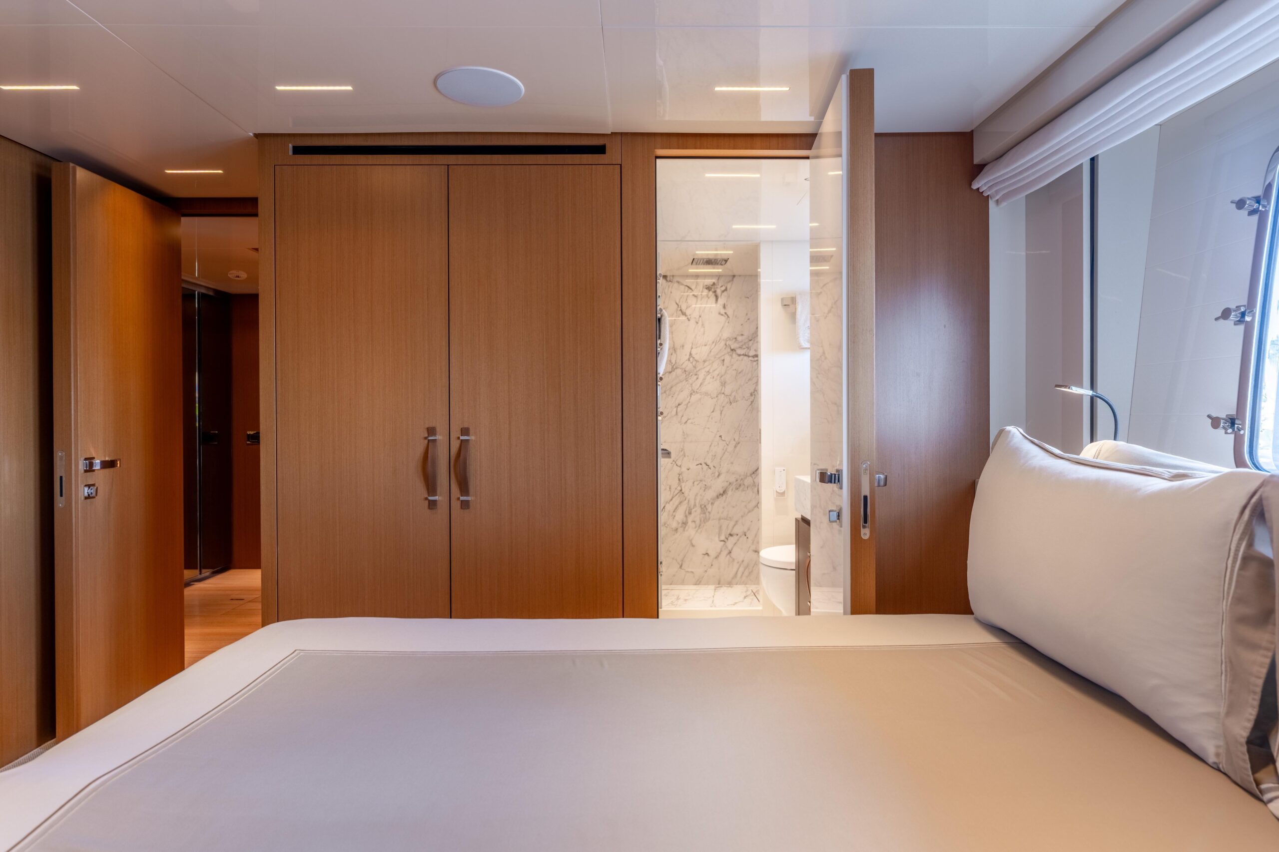 Интерьер SL120 Asymmetric разработан с акцентом на комфорт и элегантность и вмещает до 10 гостей в 5 прекрасно оформленных каютах. Каждая каюта продумана до мелочей, с высококачественной отделкой и большим количеством естественного света, создавая идеальное пространство для отдыха после насыщенного дня.