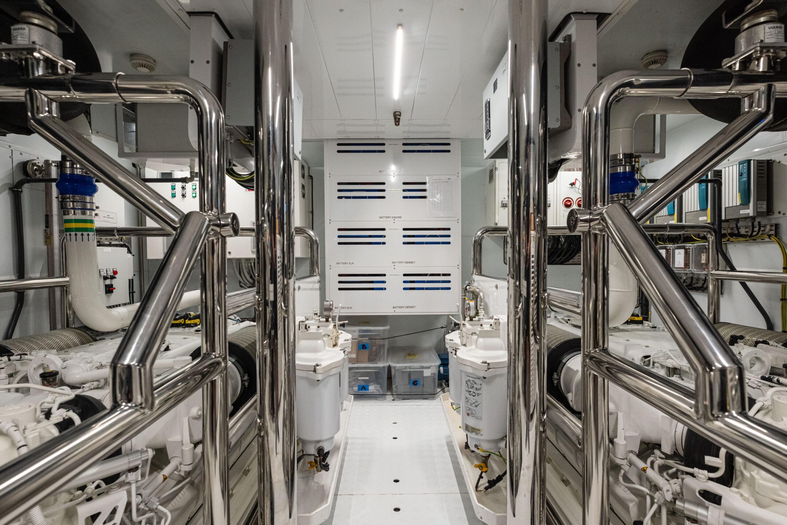 Оснащённая двумя двигателями MTU 16V 2000 M96L, яхта развивает максимальную скорость 27 узлов и комфортную крейсерскую скорость 23 узла. Запас хода рассчитан на дальние переходы, что делает SL120 идеальной для исследования побережья Флориды и других регионов.