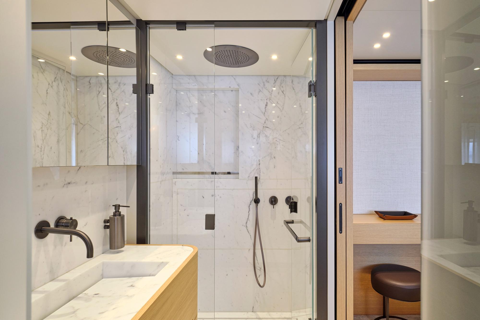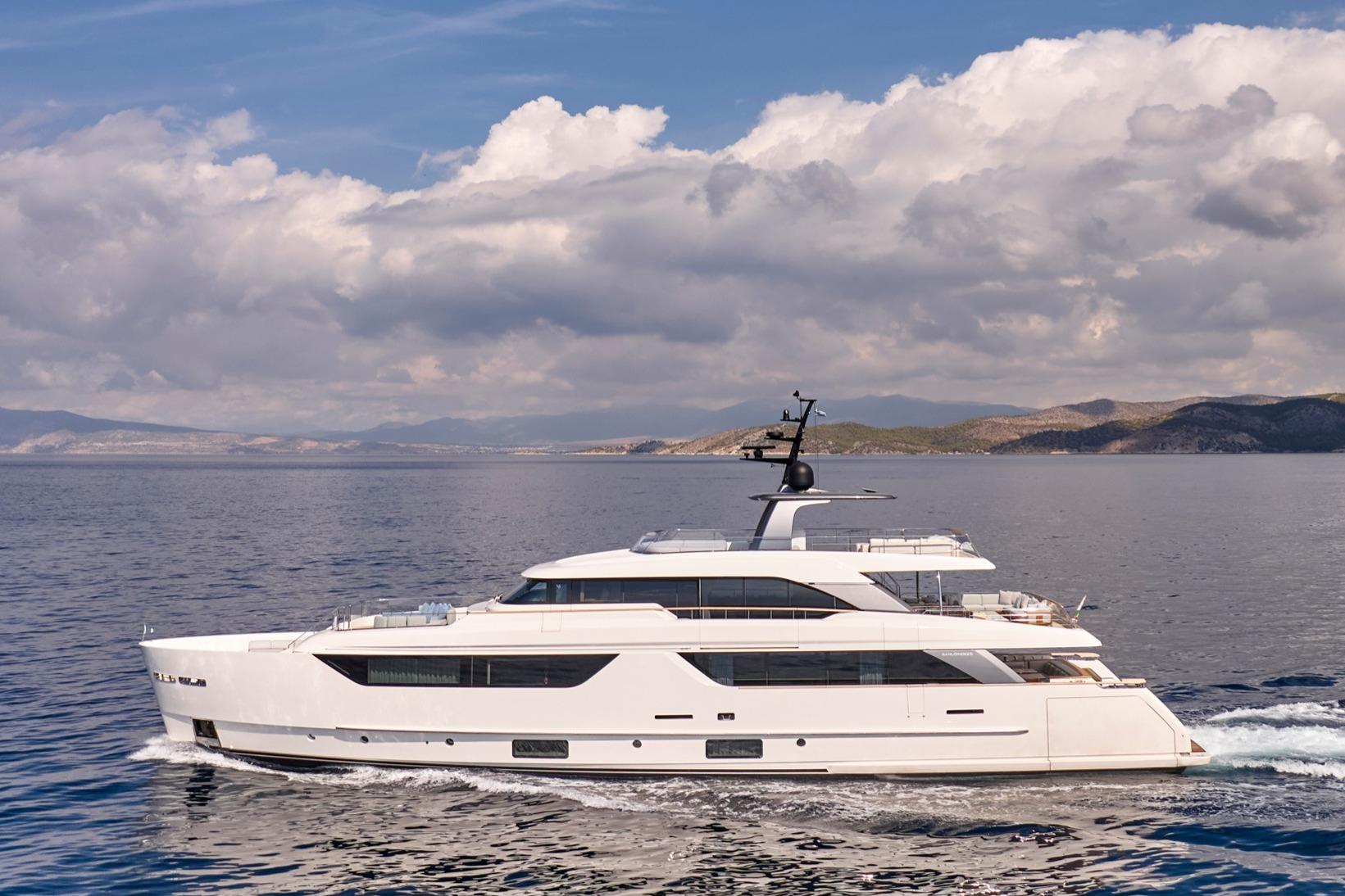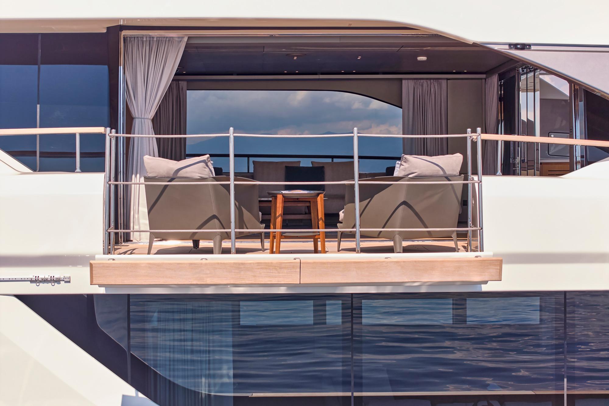 Яхта размещает до 11 гостей в пяти роскошных каютах с ванными комнатами en-suite и предлагает утончённые интерьеры, а также выдающиеся особенности, такие как открывающиеся боковые балконы в бич-клабе, превращающие жизнь на воде в незабываемый вседневный опыт. Оснащённая двумя дизельными двигателями CAT C32 ACERT мощностью по 1 622 л.с., она комфортно идёт на крейсерской скорости 14 узлов, развивает максимальную скорость до 19 узлов и обладает впечатляющим запасом хода 2 500 морских миль при экономичной скорости 11 узлов.