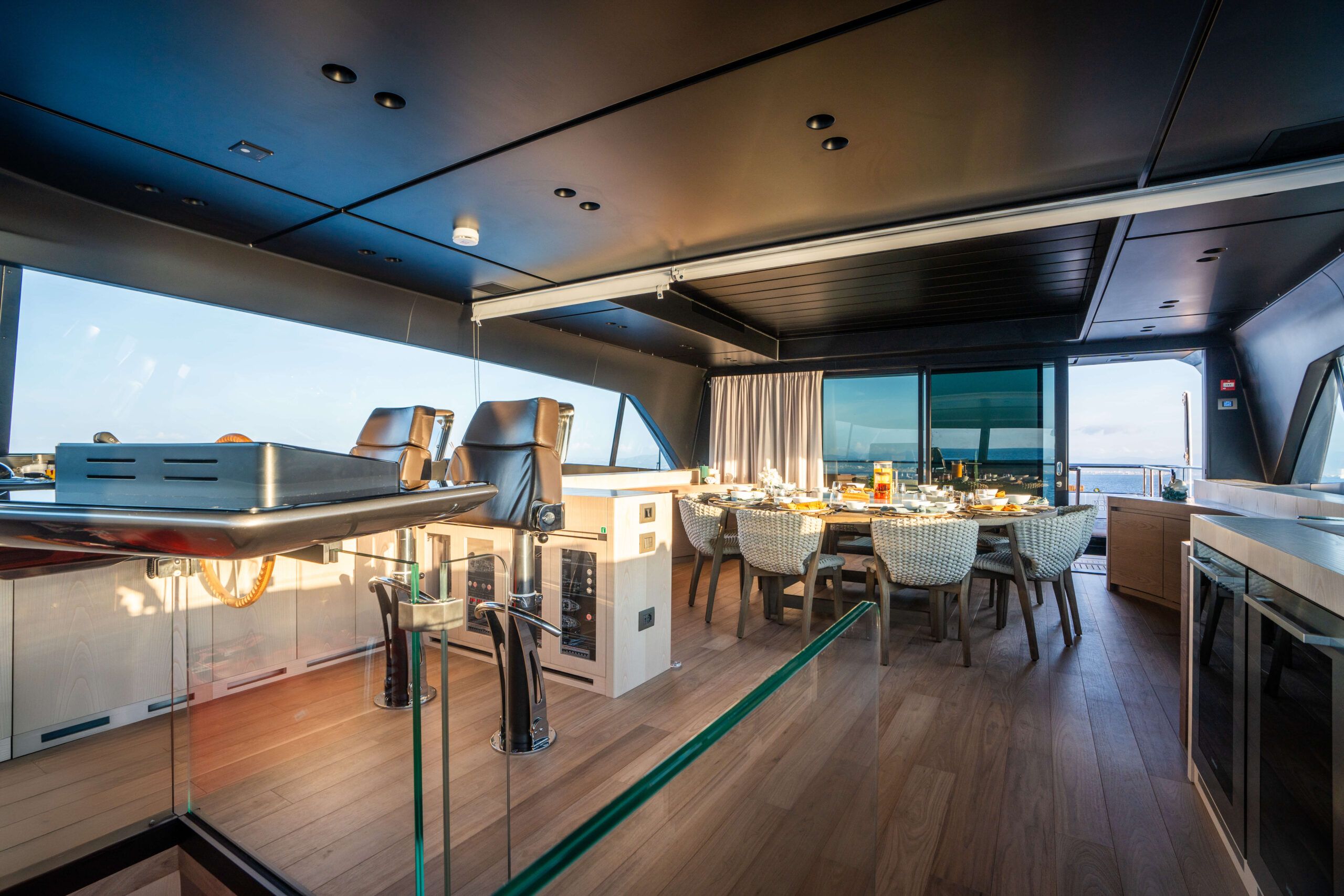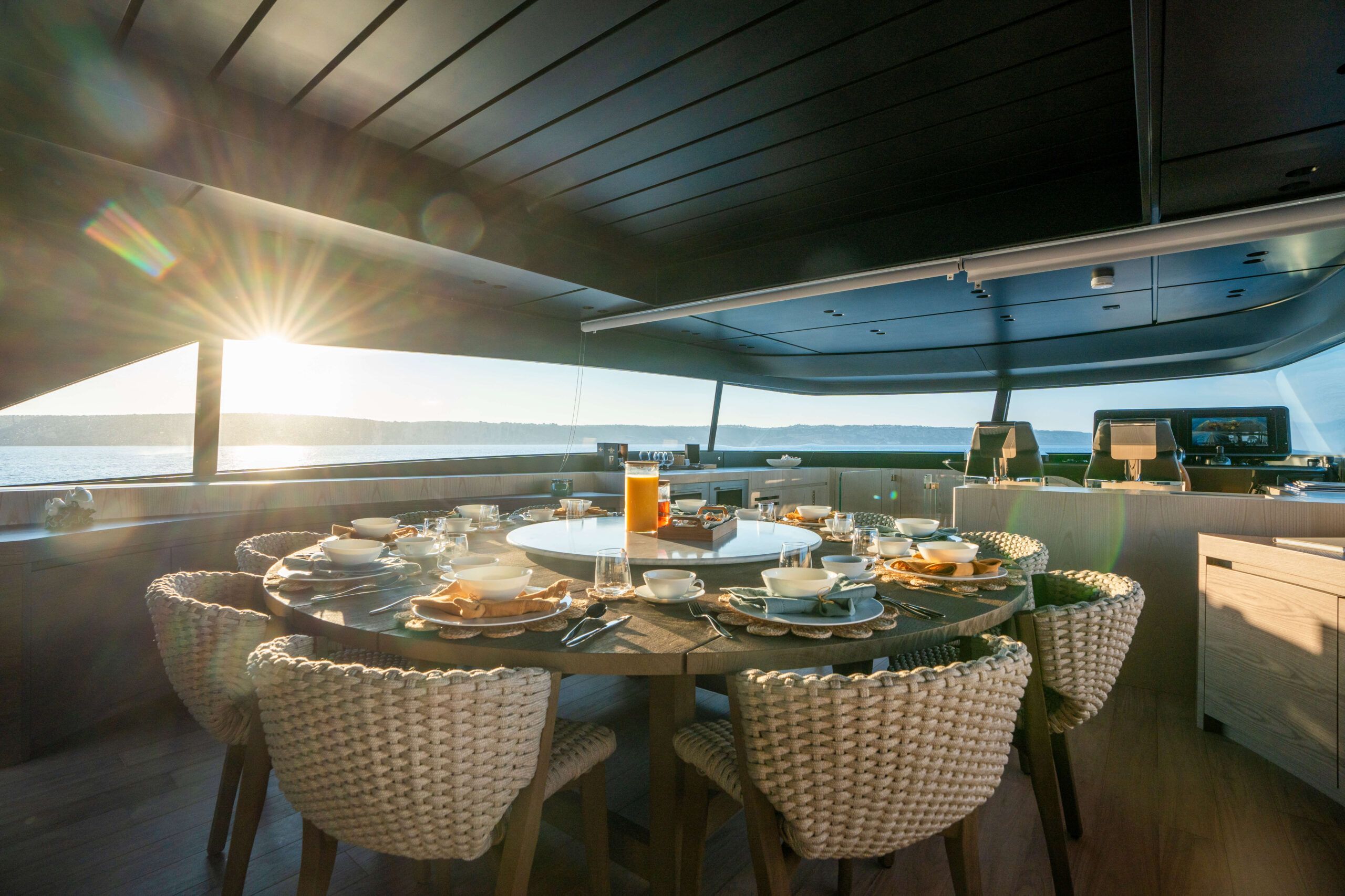 Центральным элементом SX112 является её beach club — просторная зона у воды, которая значительно расширяется за счёт откидных террас. В сочетании с большими раздвижными окнами от пола до потолка это создаёт исключительное ощущение единства с морем на всех внешних палубах.