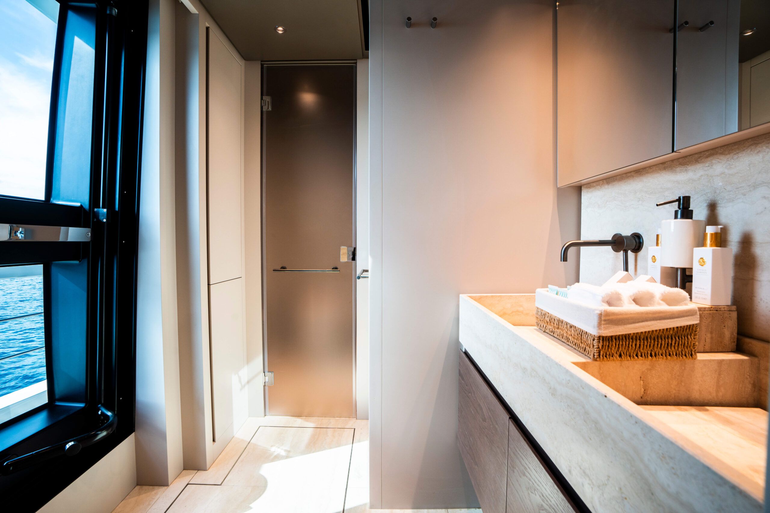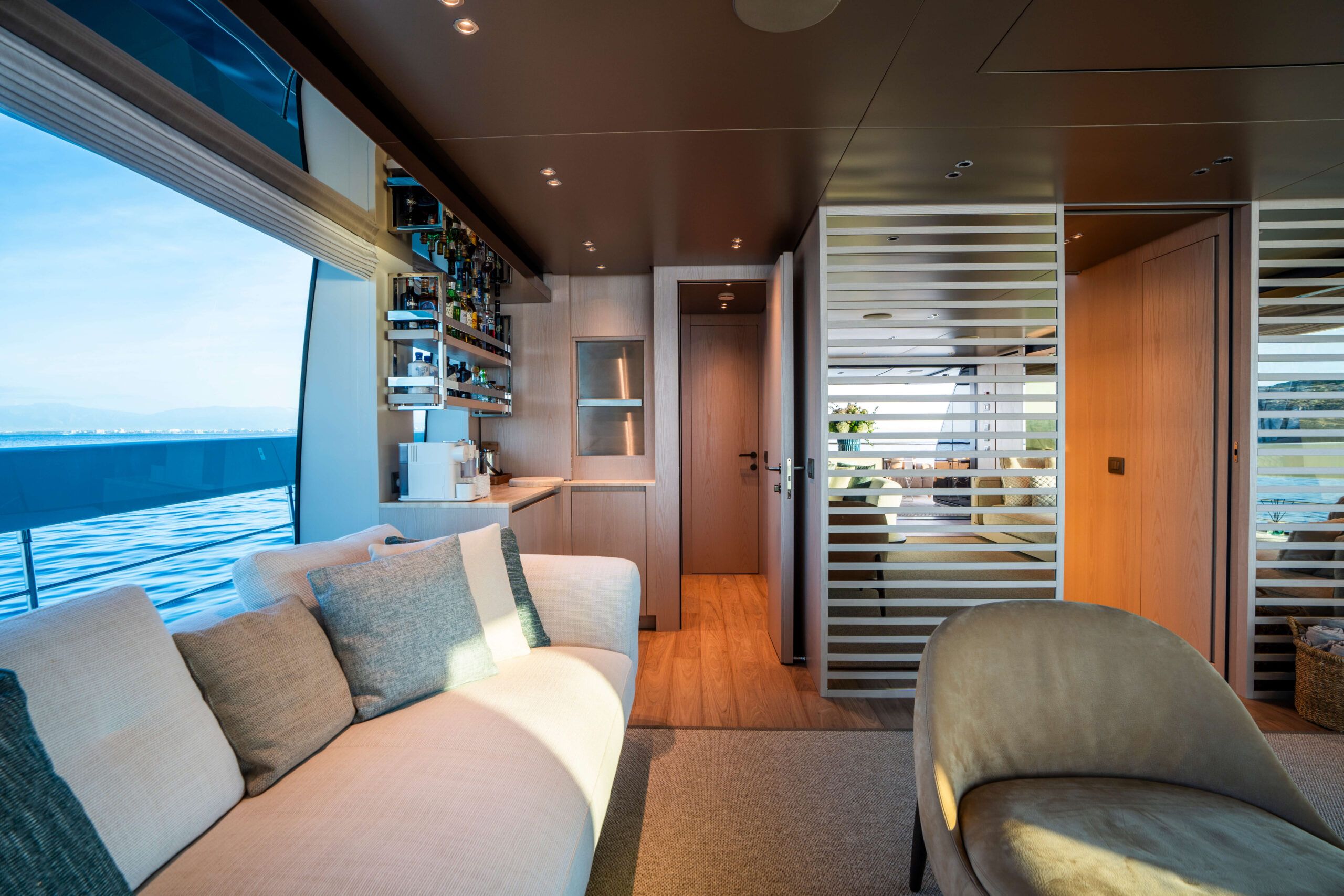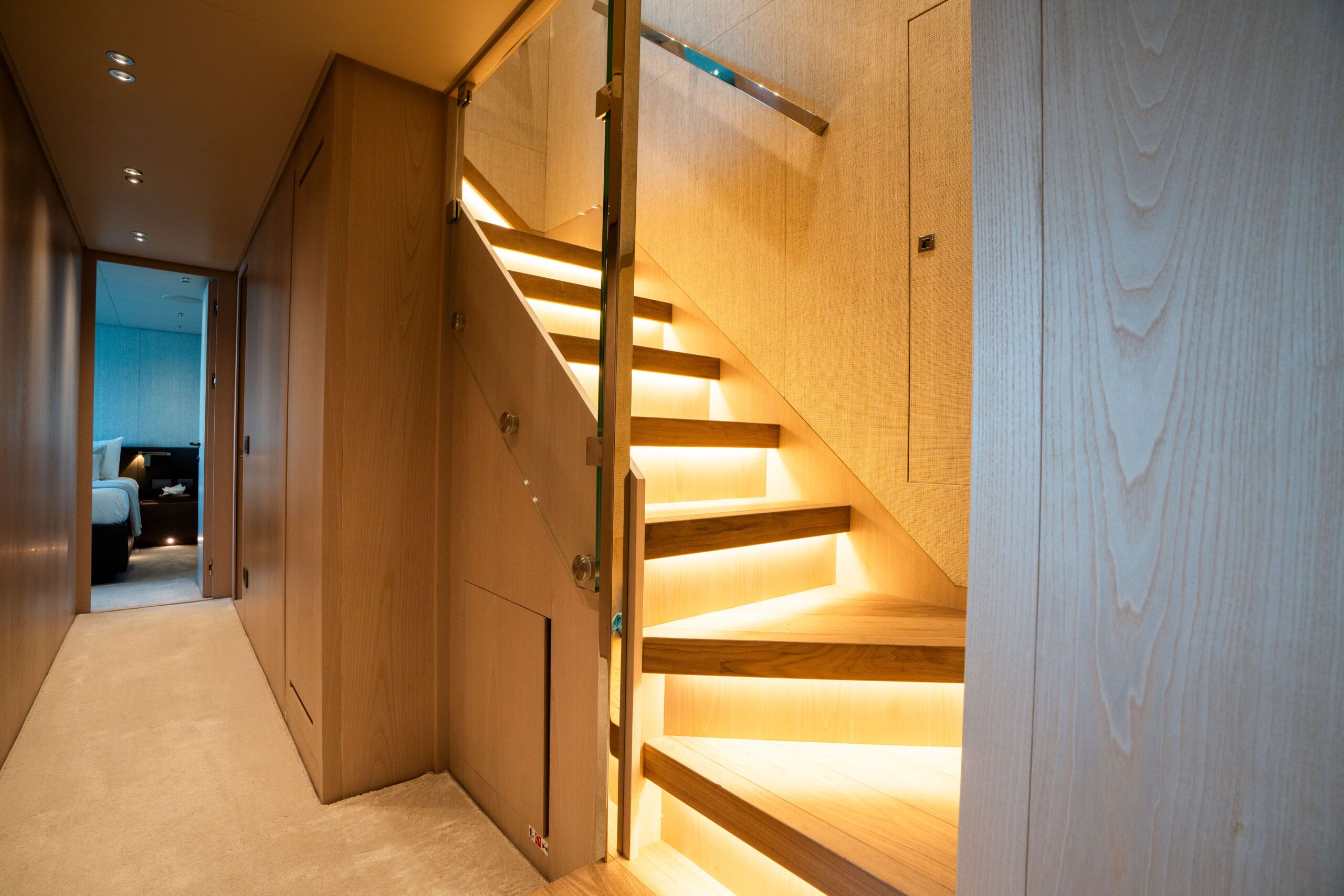 Благодаря работе команды экспертов удалось максимально эффективно использовать все 34 метра длины корпуса. Небольшие изменения планировки позволили создать увеличенные мастер-каюту и VIP-каюту, обеспечив ещё больший уровень комфорта и приватности для владельца и гостей.