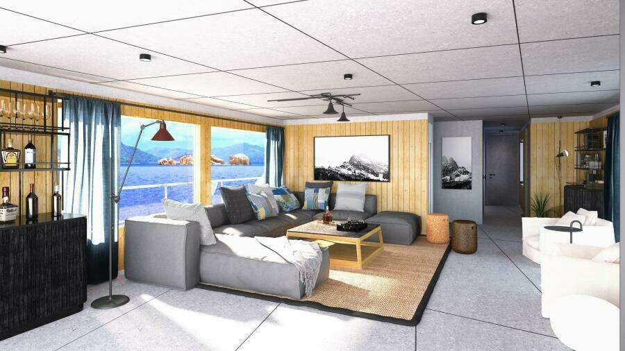 Помимо главного салона на главной палубе с панорамными окнами, предусмотрены обеденные зоны на открытом воздухе на кормовой палубе и крытом солярии, при этом планировка может быть адаптирована под пожелания владельца.