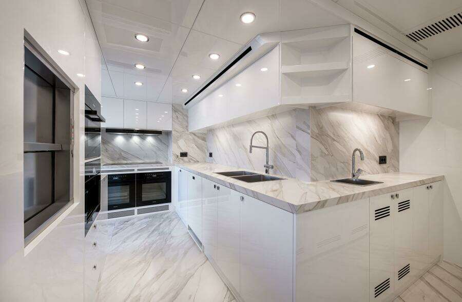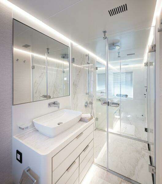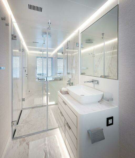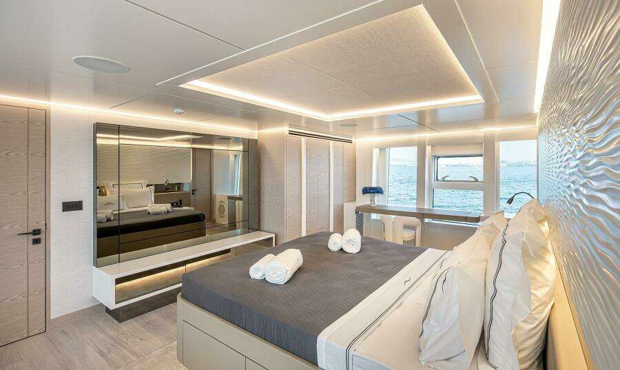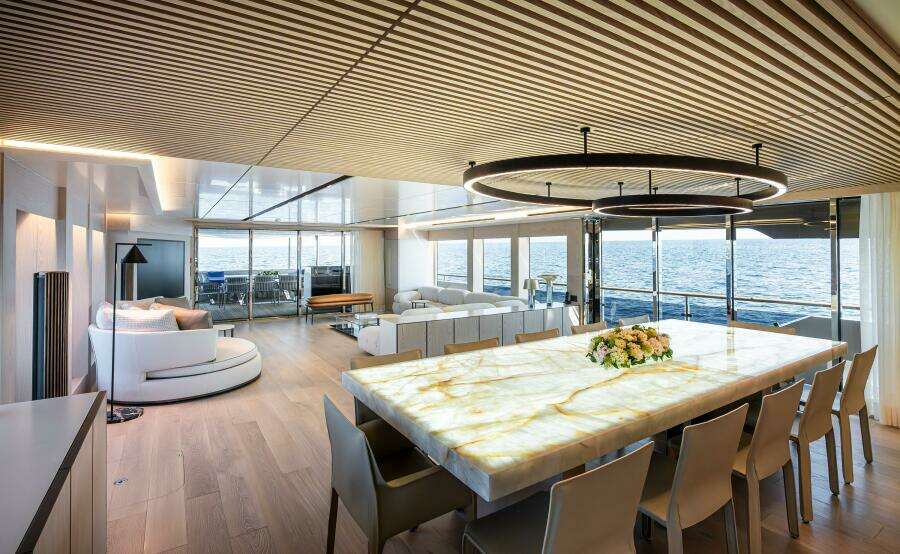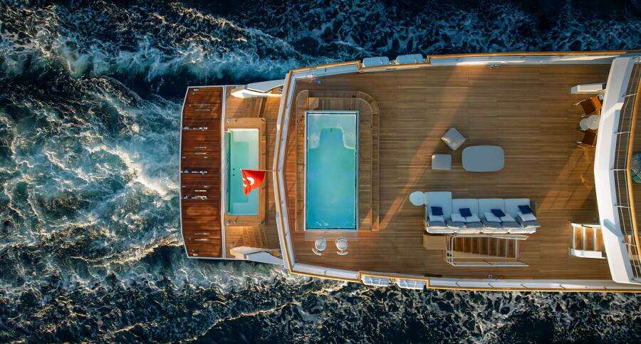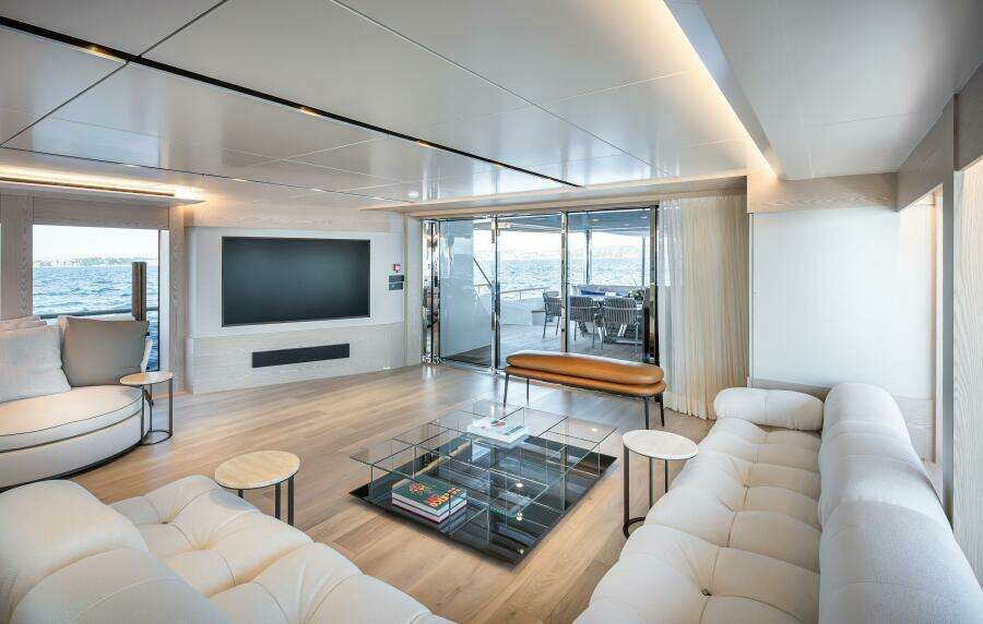 Отказавшись от зоны гаража/beach club, мы смогли увеличить купальную платформу, благодаря чему общая длина увеличилась с 37 м до 40 м. Джакузи создало привлекательную зону для отдыха ближе к воде, а перенос раздвижных дверей кормовой палубы вперёд позволил увеличить наружное пространство главной кормовой палубы: часть огромного салона (как на 37XP) была преобразована в открытую зону. Вы по-прежнему получаете впечатляющий объём, которого ожидают от 37XP, но теперь внешние и внутренние пространства стали более сбалансированными.